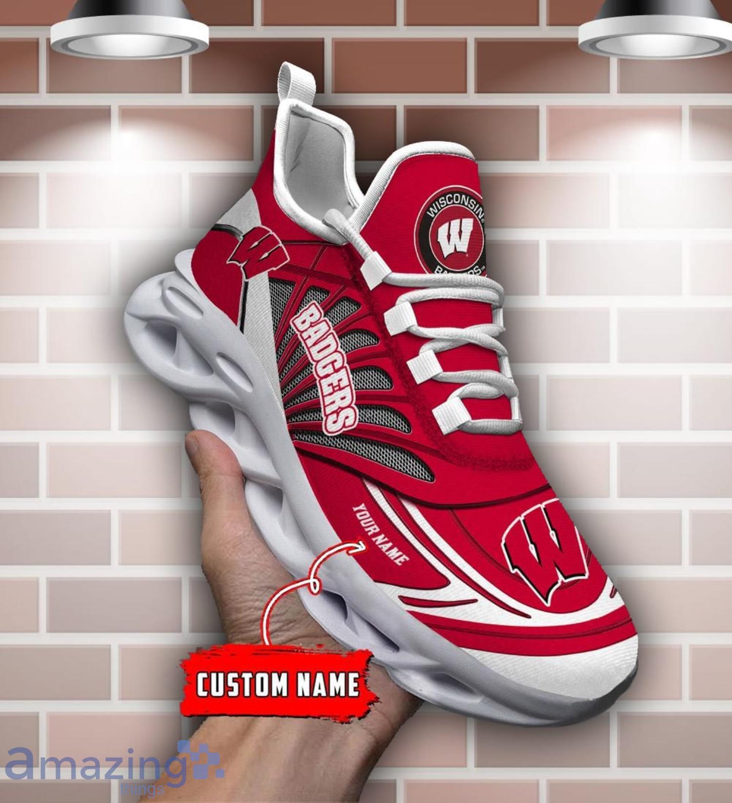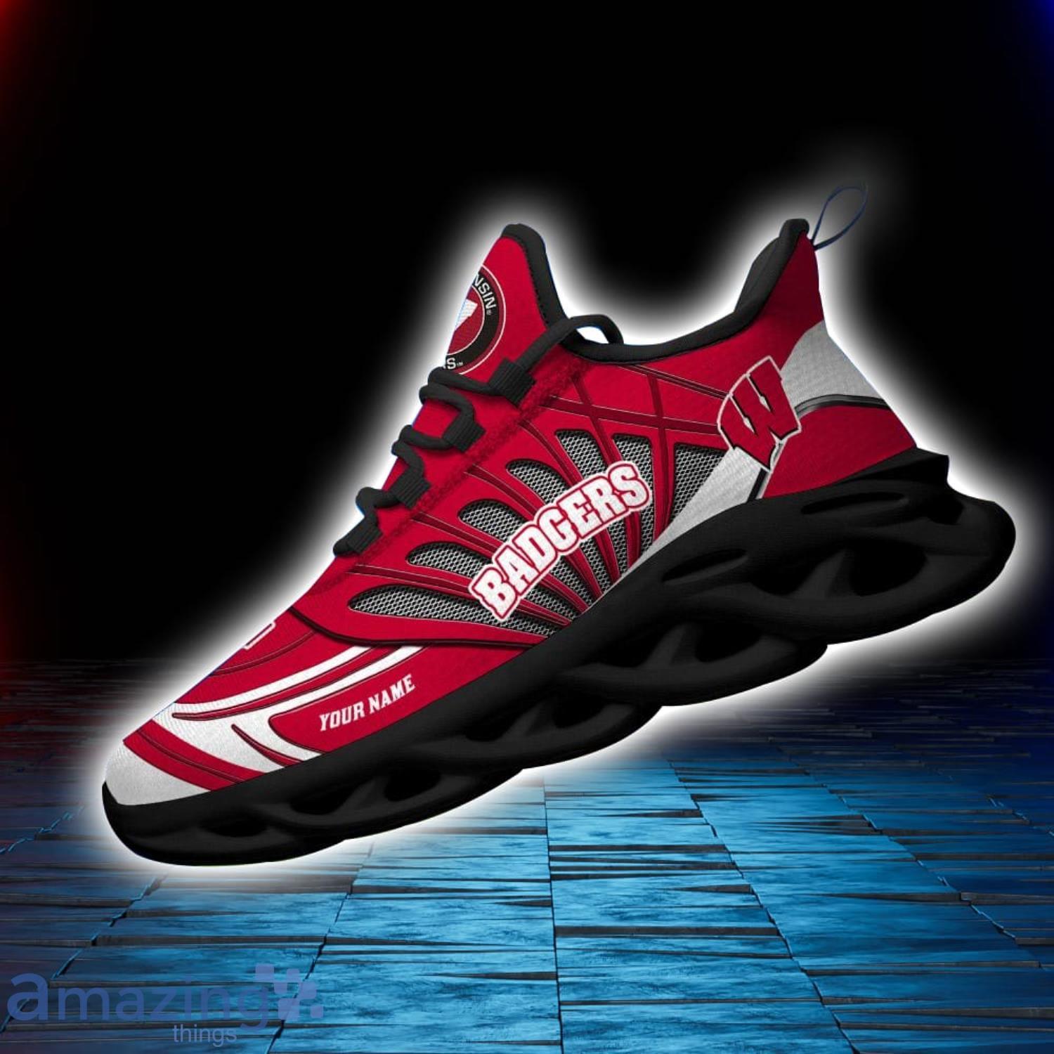 Don’t miss out on the latest sports trend – order your Custom Name Wisconsin Badgers Personalized Name Max Soul Shoe now and step into a world of unmatched style and team spirit!
