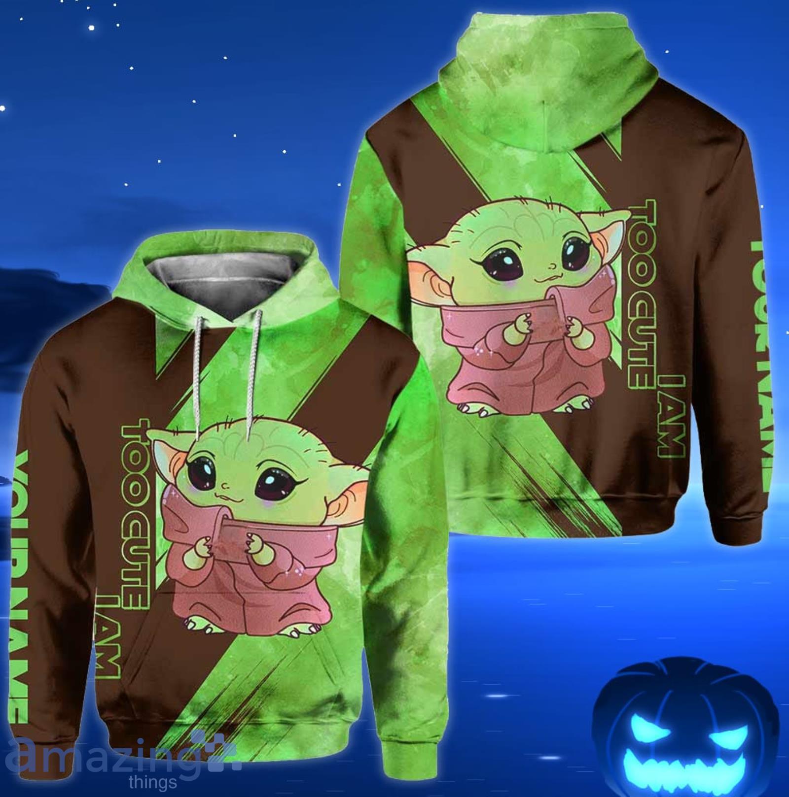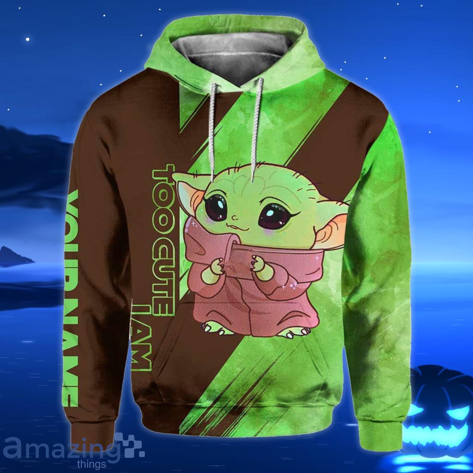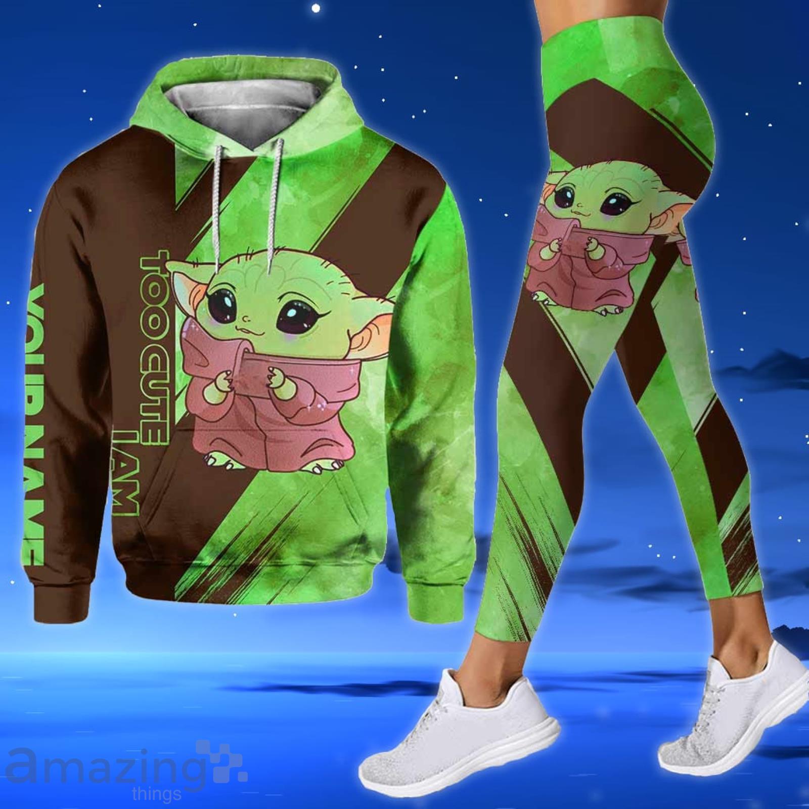 Custom Name Yoda Too Cute I Am All Over Print 3D Hoodie And Leggings Green & Brown