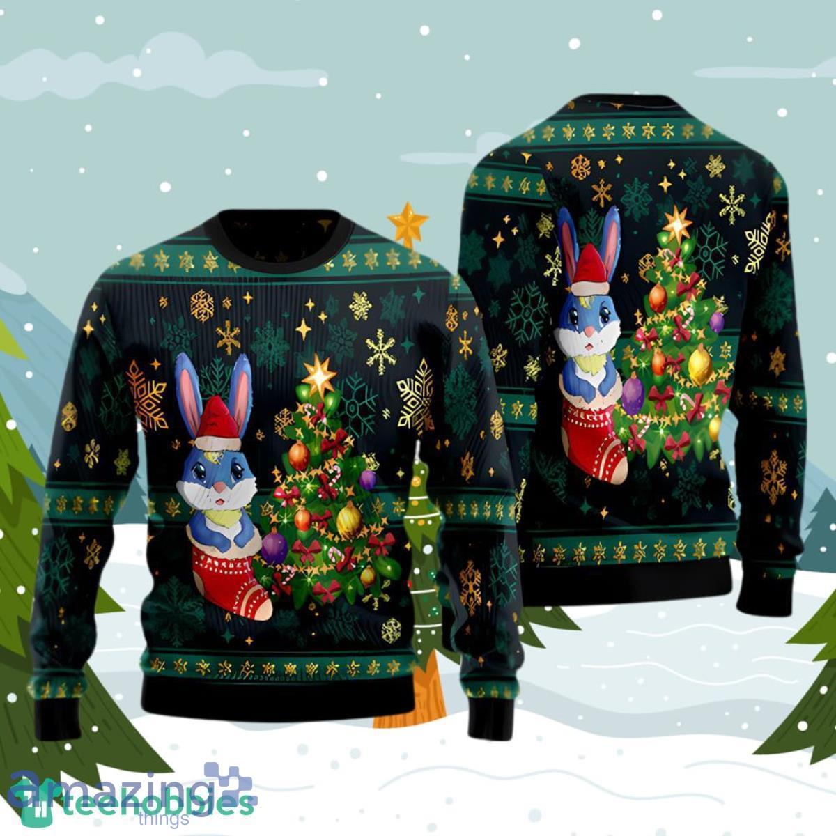 Some of the Cute Cartoon Rabbit In A Santa Hat Ugly Christmas Sweater Style Gift For Men And Women photos