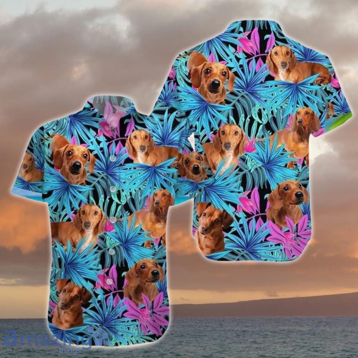 Get ready to make a bold fashion statement with our Dachshund Hawaiian Shirt! This funny button-up Aloha style shirt is the perfect gift for both men and women who love to stand out in a crowd. Made with high-quality material, this shirt features a playful Dachshund print that is sure to turn heads. Whether you’re heading to a summer BBQ, beach party, or just want to add some fun to your wardrobe, this shirt is a must-have. Embrace the laid-back island vibe with our Dachshund Hawaiian Shirt and bring a touch of humor to your style!