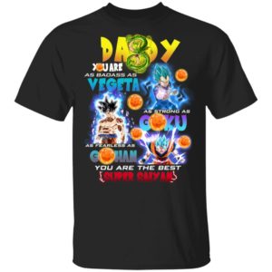 The message on the shirt, “Daddy You Are As Badass As Vegeta Strong As Goku, As Fearless As Gohan You Are The Best Super Saiyan Father’s Day Gift Shirt,” highlights specific heroic attributes.* Strong As Goku: Goku represents incredible power, resilience, and an unwavering spirit. If your dad faces challenges with determination and strength, this comparison is spot on.* Badass As Vegeta: Vegeta embodies pride, determination, and a certain ‘badass’ attitude that gets things done. For the dad who is tough, resilient, and maybe a little stubborn in the best way, this captures his essence.* Fearless As Gohan: Gohan demonstrates courage, intelligence, and the willingness to stand up for what’s right, especially for his loved ones. This speaks to a father’s protective and brave nature.Combined, these comparisons declare him the “Best Super Saiyan Father” – a title any DBZ-loving dad would wear with pride. This Daddy Shirt serves as a constant reminder of the admiration and love you have for him, celebrating him as your personal hero.