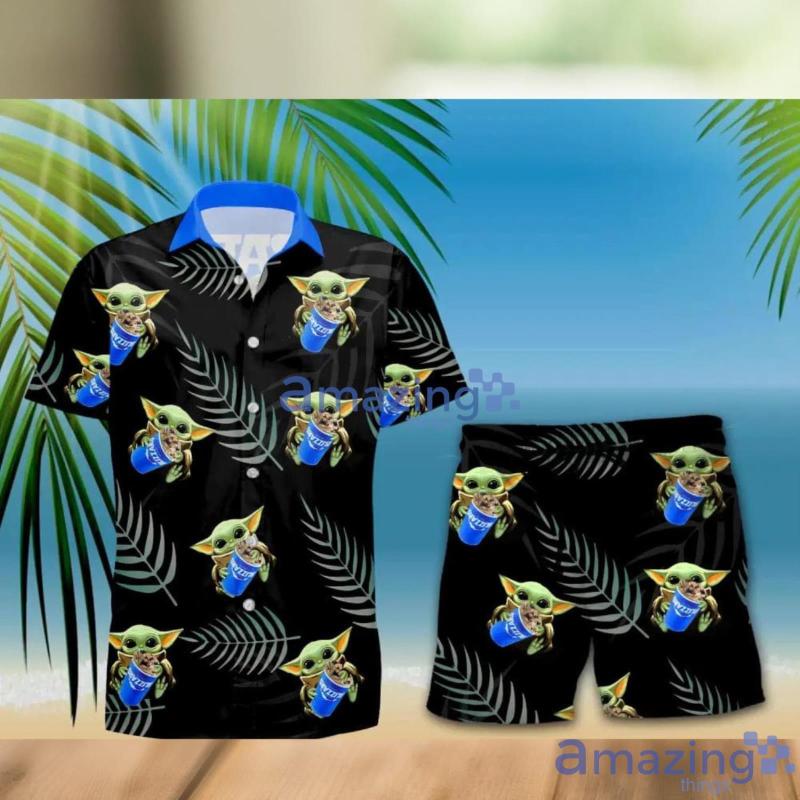 Crafted with utmost care, this ensemble features a playful Baby Yoda hugging the iconic Dairy Queen logo, creating a unique and eye-catching design. The shirt and shorts are made from premium quality materials, ensuring a lightweight and breathable feel that keeps you cool even on the hottest days.