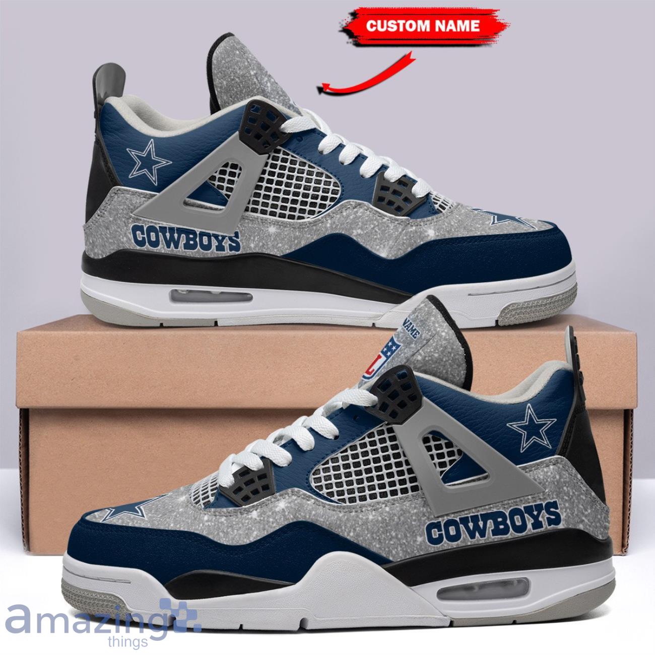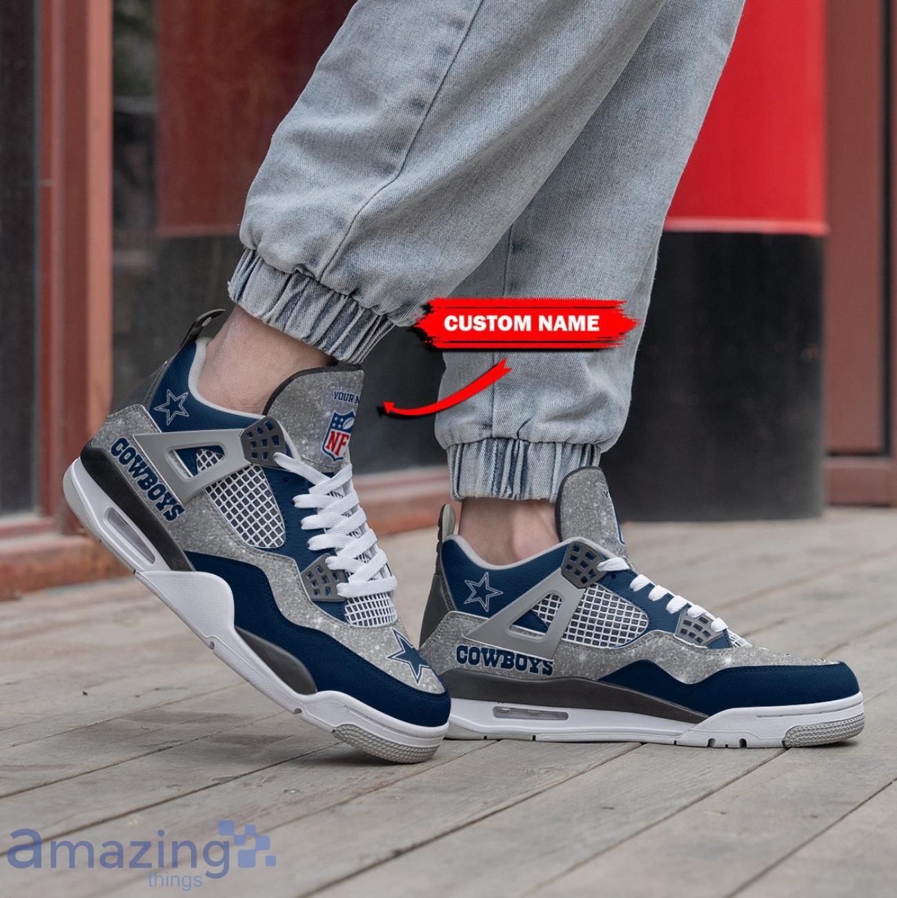 Crafted with the iconic Air Jordan 4 design, these sneakers feature a personalized touch that truly sets them apart. You can proudly display your name or the name of a loved one, making these shoes a truly unique and special gift for any Dallas Cowboys fan.