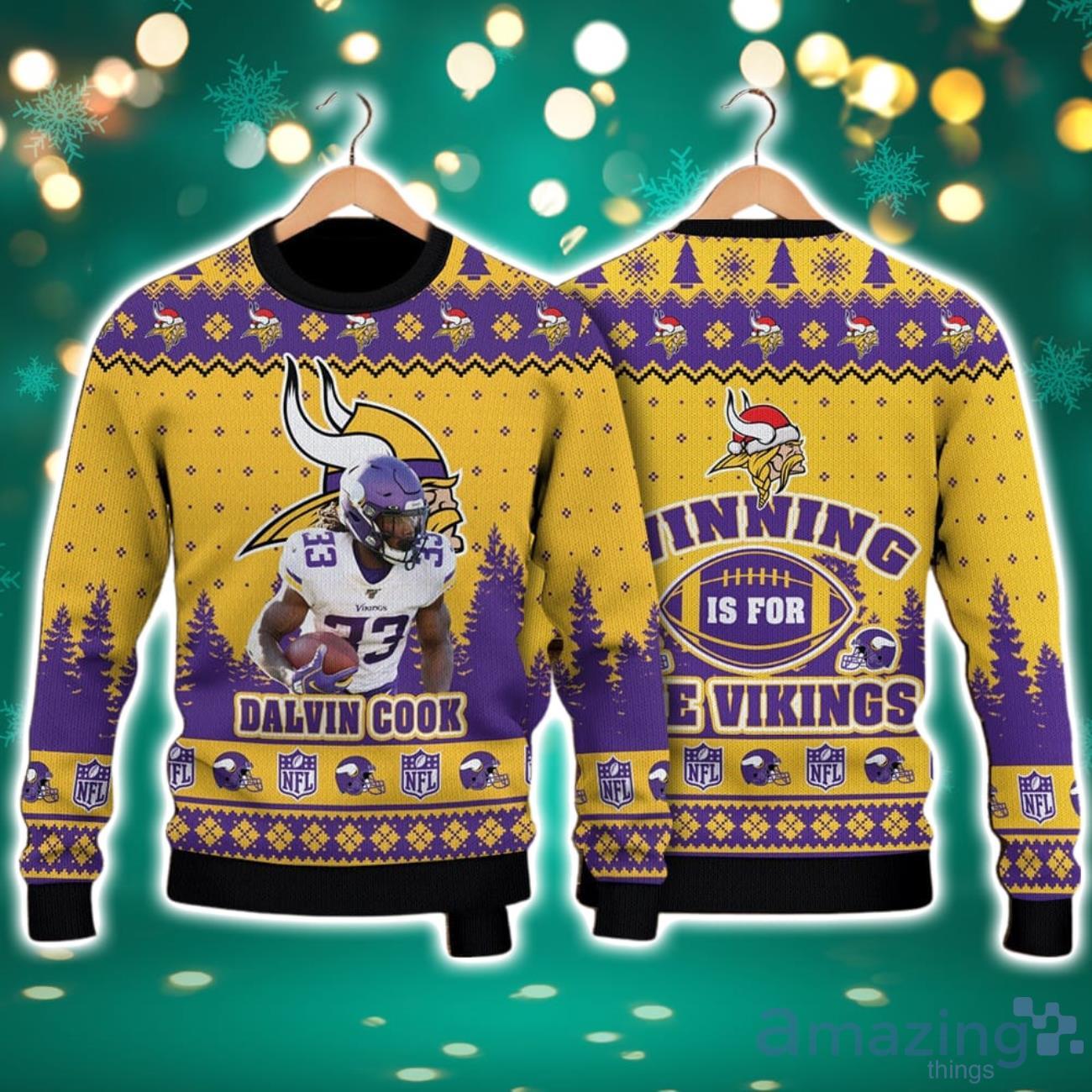 Whether you’re attending a Christmas party, watching the game from the comfort of your own home, or looking for the ideal gift for a fellow Vikings fan, our Dalvin Cook Minnesota Vikings Winning Is For The Vikings NFL Christmas Ugly Sweater is the ultimate choice. Embrace the holiday spirit and showcase your unwavering support for the Vikings with this must-have sweater. Order yours today and let the festive celebrations begin!