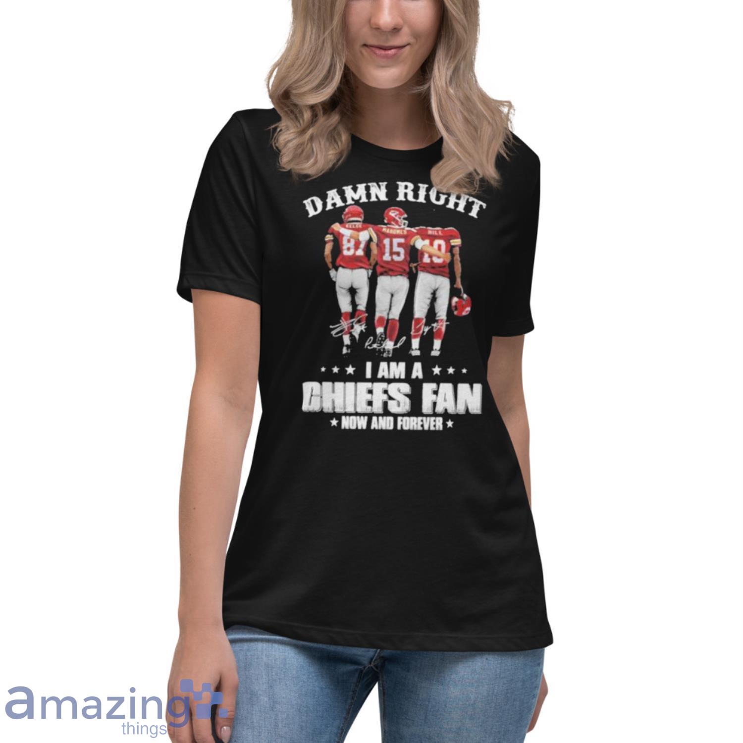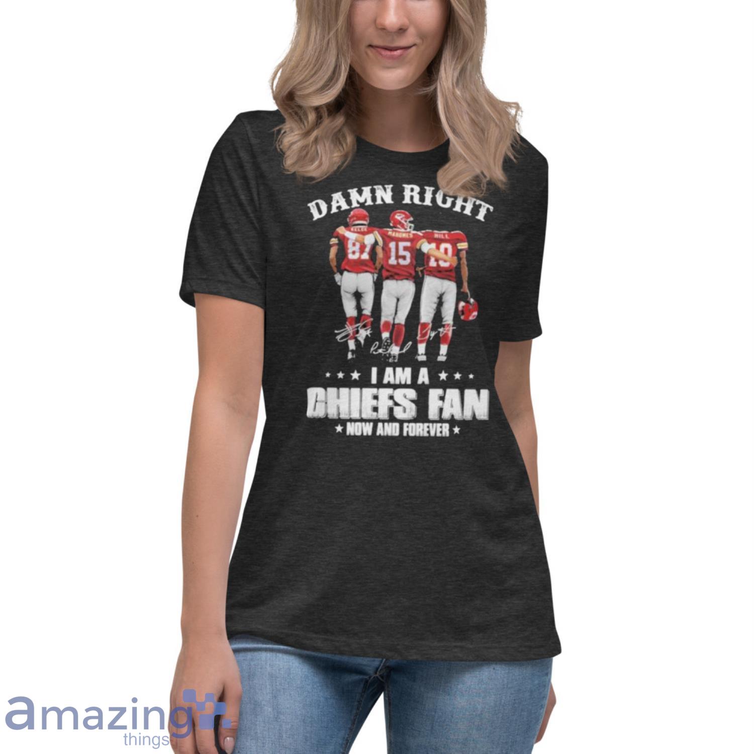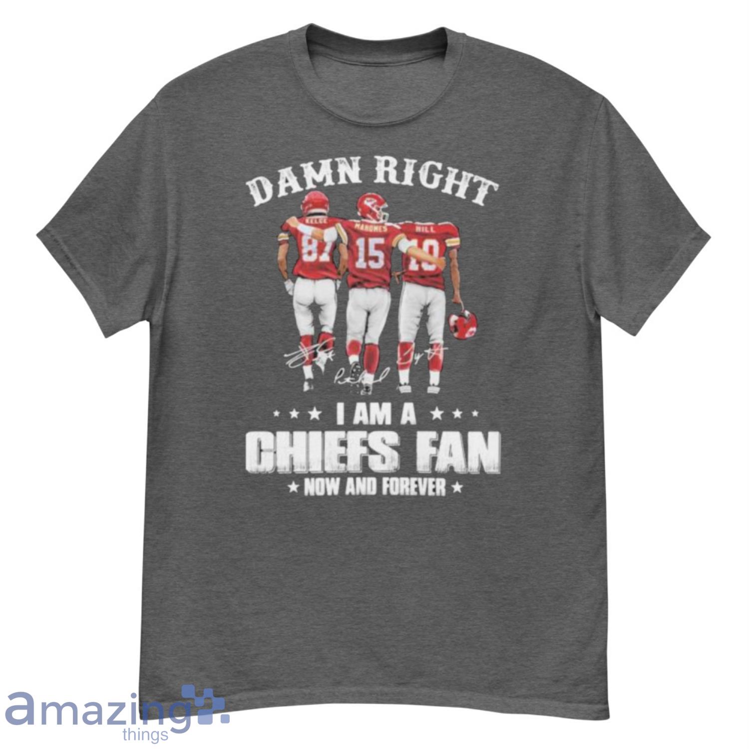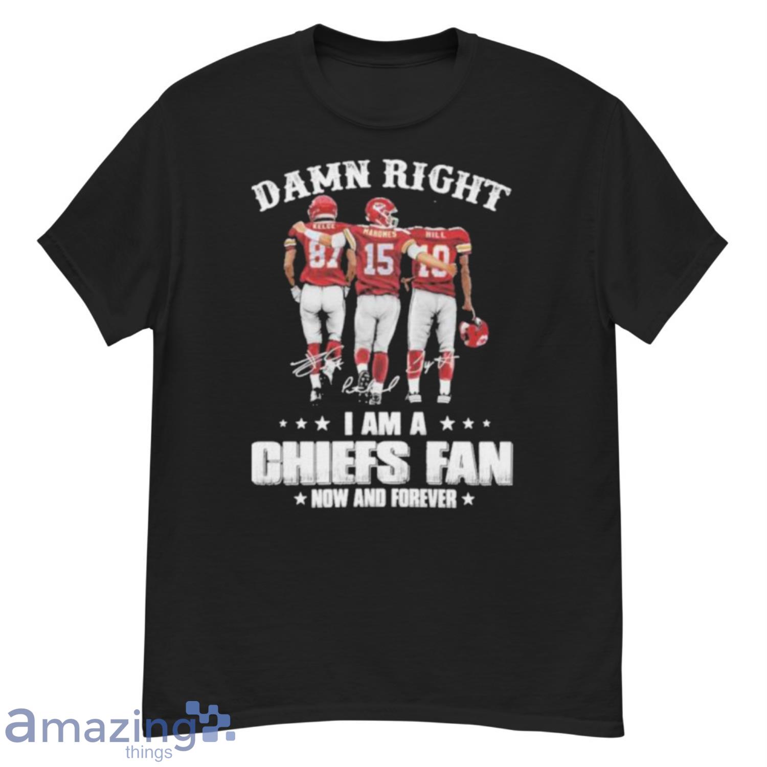 Some of the Damn Right I’m A Chiefs Fan Now And Forever Travis Kelce Patrick Mahomes Hill Signatures Shirt photos
