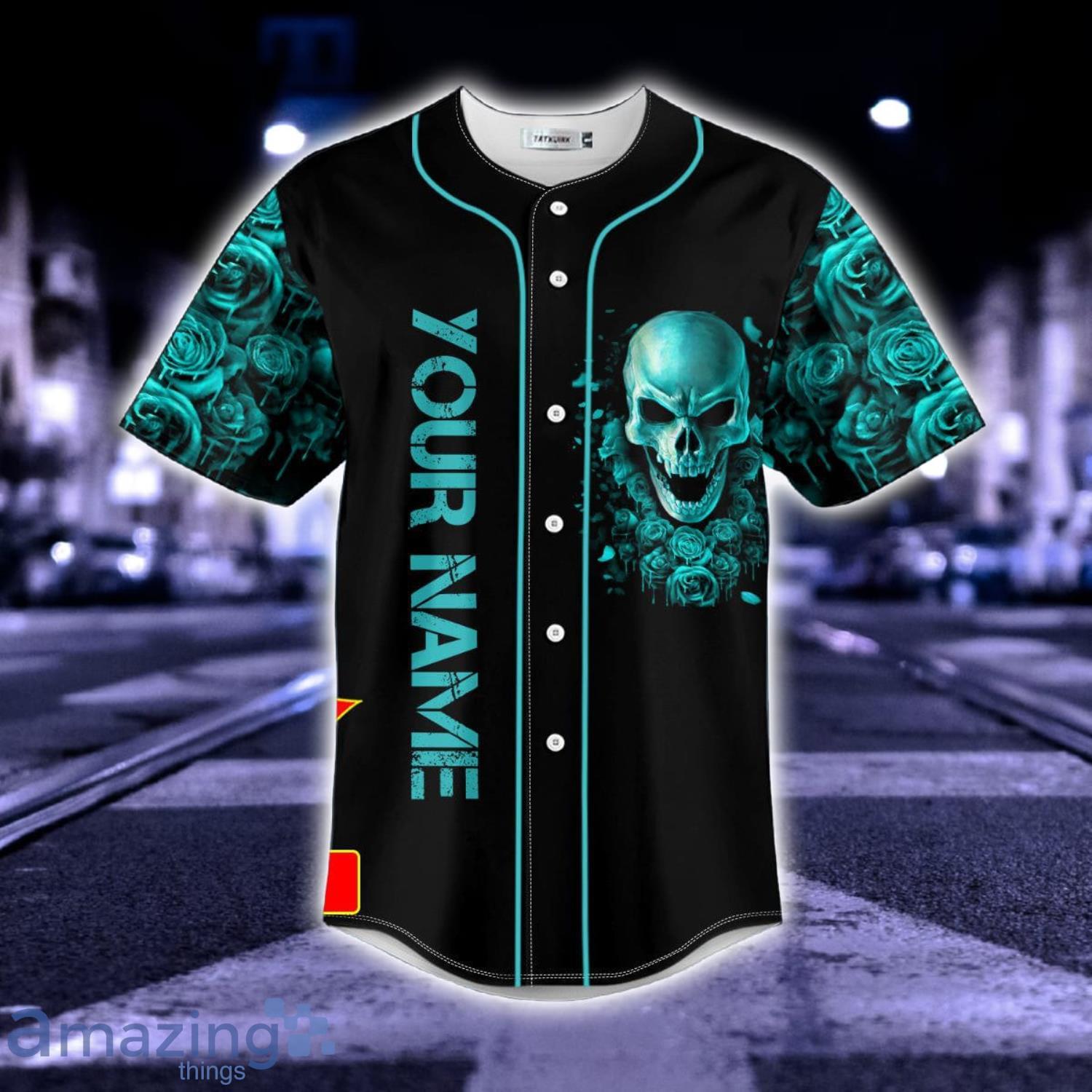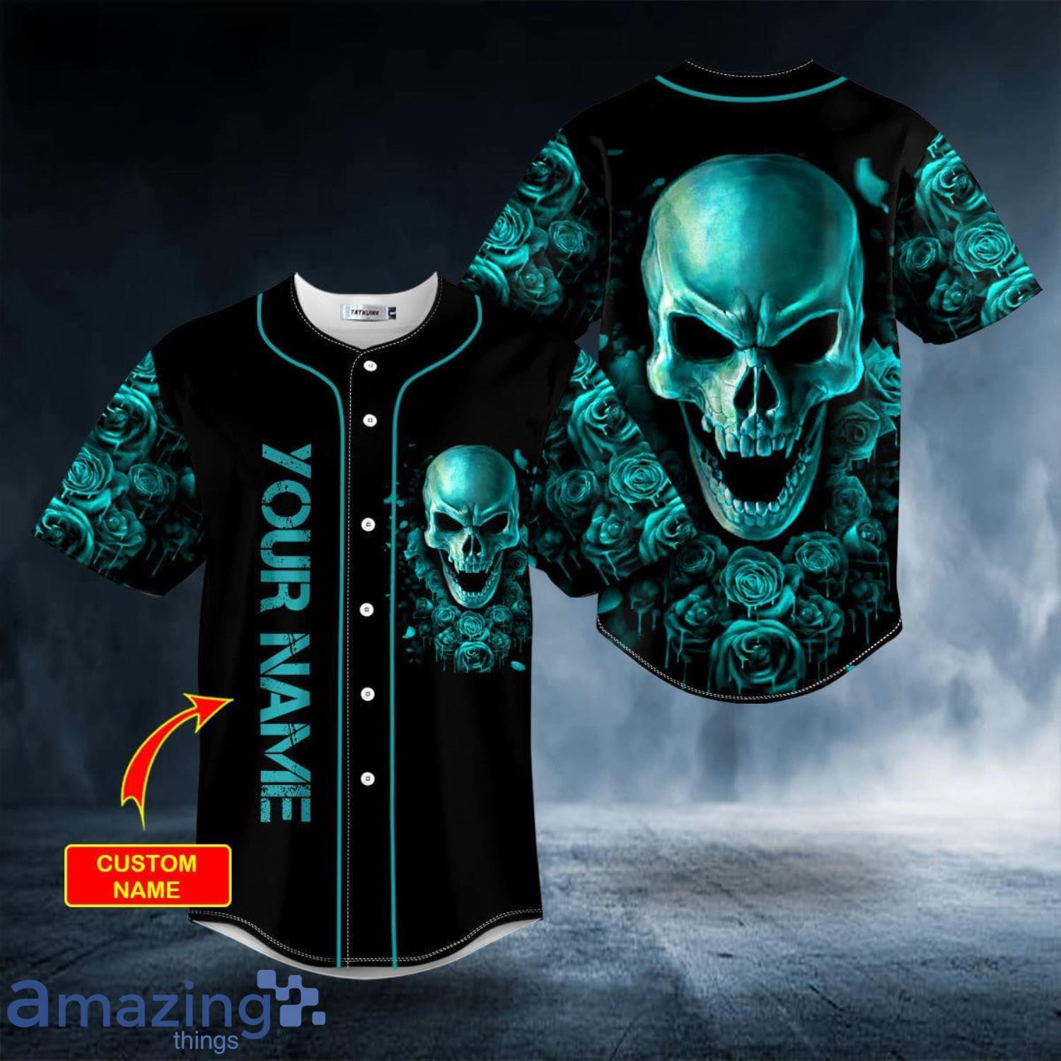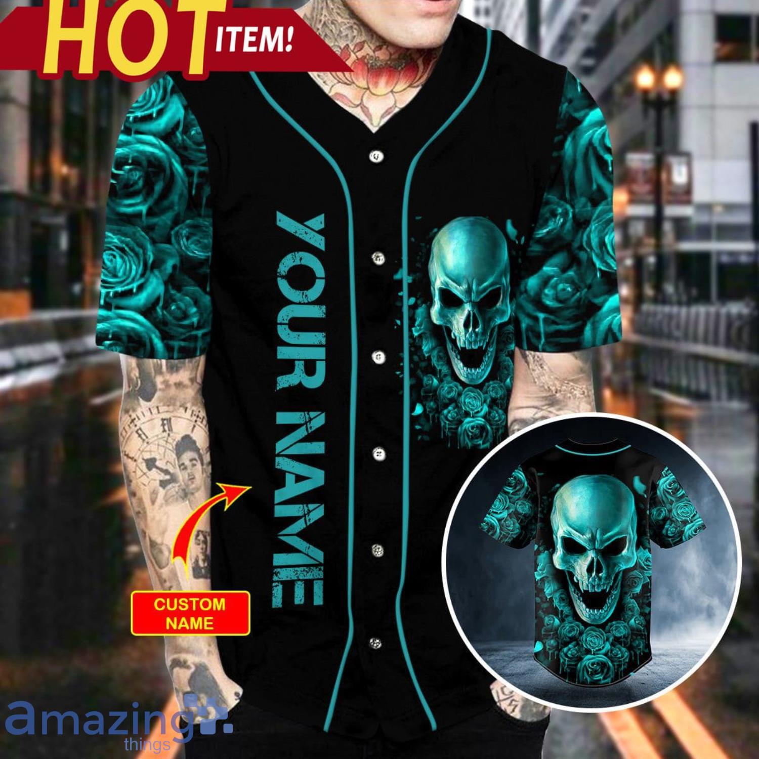 Dark Aquamarine Color Roses Sugar Skull Custom Name All Over Print Baseball Jersey Shirt