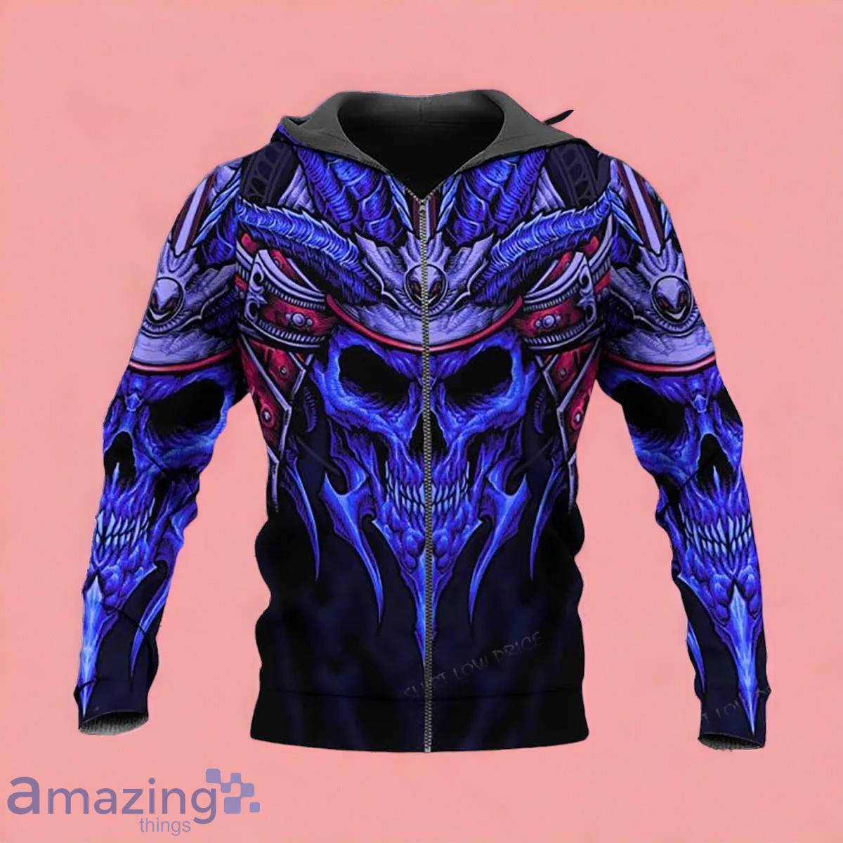 Dark Blue Warrior Skull Zip Up 3D Hoodie Gift For Men And Women
