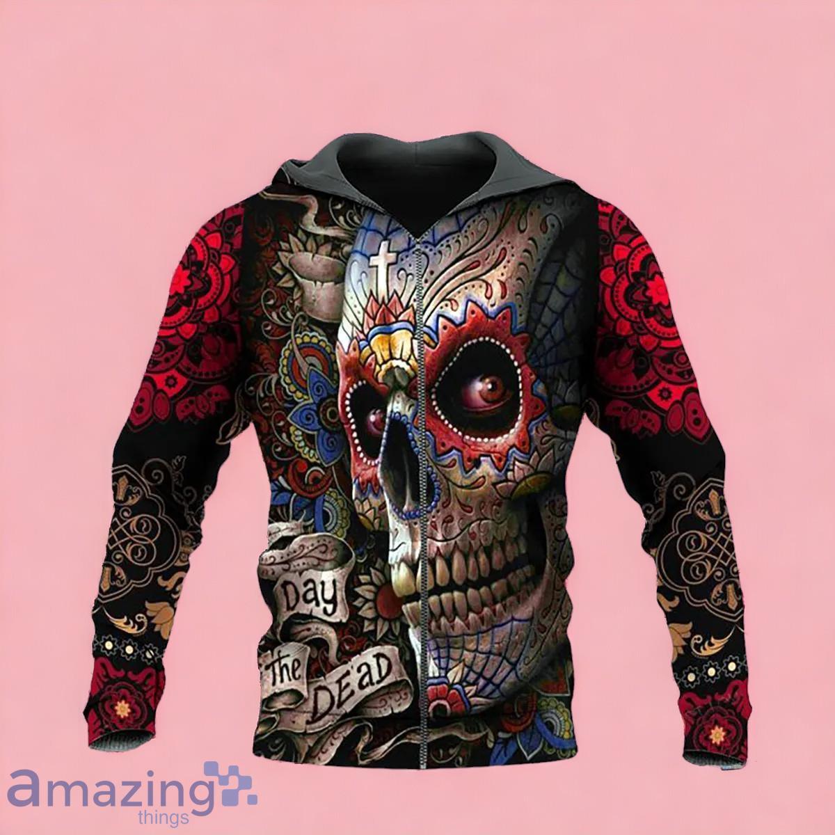 Day Of The Dead Tribal Sugar Skull Zip Up 3D Hoodie Gift For Men And Women