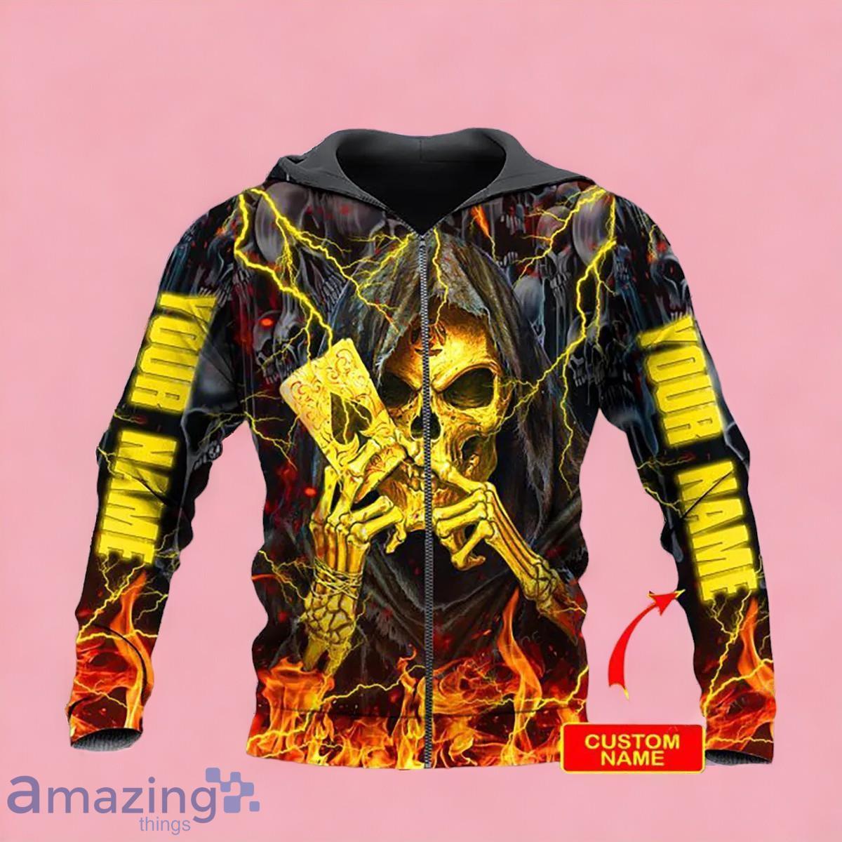Dead Card Ace Spade Grim Reaper Fire Skull Custom Name Zip Up 3D Hoodie Best Gift Information