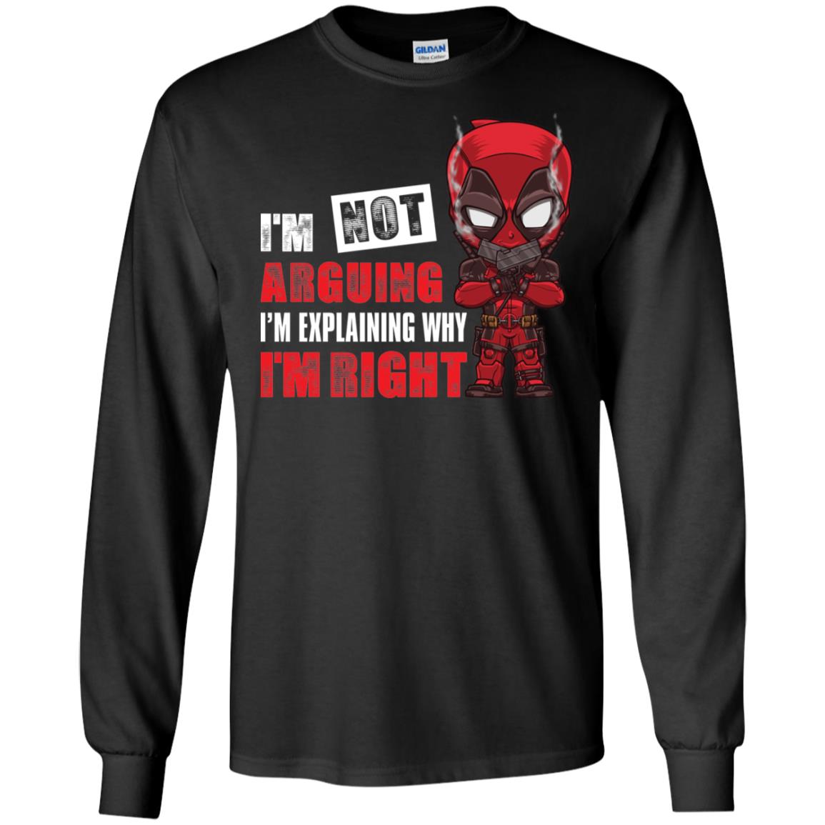 Ready to add this legendary line to your wardrobe? The “Deadpool– I’m Not Arguing Just Explaining Why I’m Right Shirt” and its variations (t-shirt, hoodie, long sleeve, sweatshirt) are waiting for you. Choose your preferred style and size to start explaining why you’re right, the Deadpool way!