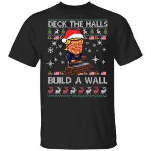 The trend of wearing ugly Christmas shirts and sweaters has grown immensely in popularity. What started as a niche, ironic fashion statement has become a mainstream holiday staple. People actively seek out the most outrageous, gaudy, or hilariously themed apparel they can find. A “Funny Trump Ugly Christmas Shirt” fits perfectly into this category, offering a blend of holiday merriment and topical humor.The humor in this specific shirt lies in the juxtaposition of the traditional Christmas carol lyric, “Deck The Halls,” with the political slogan, “Build The Wall.” This unexpected combination creates a talking point and a playful commentary on current events, filtered through the lens of holiday fun. It’s designed for those who appreciate political satire and aren’t afraid to wear their sense of humor on their sleeve, quite literally.
