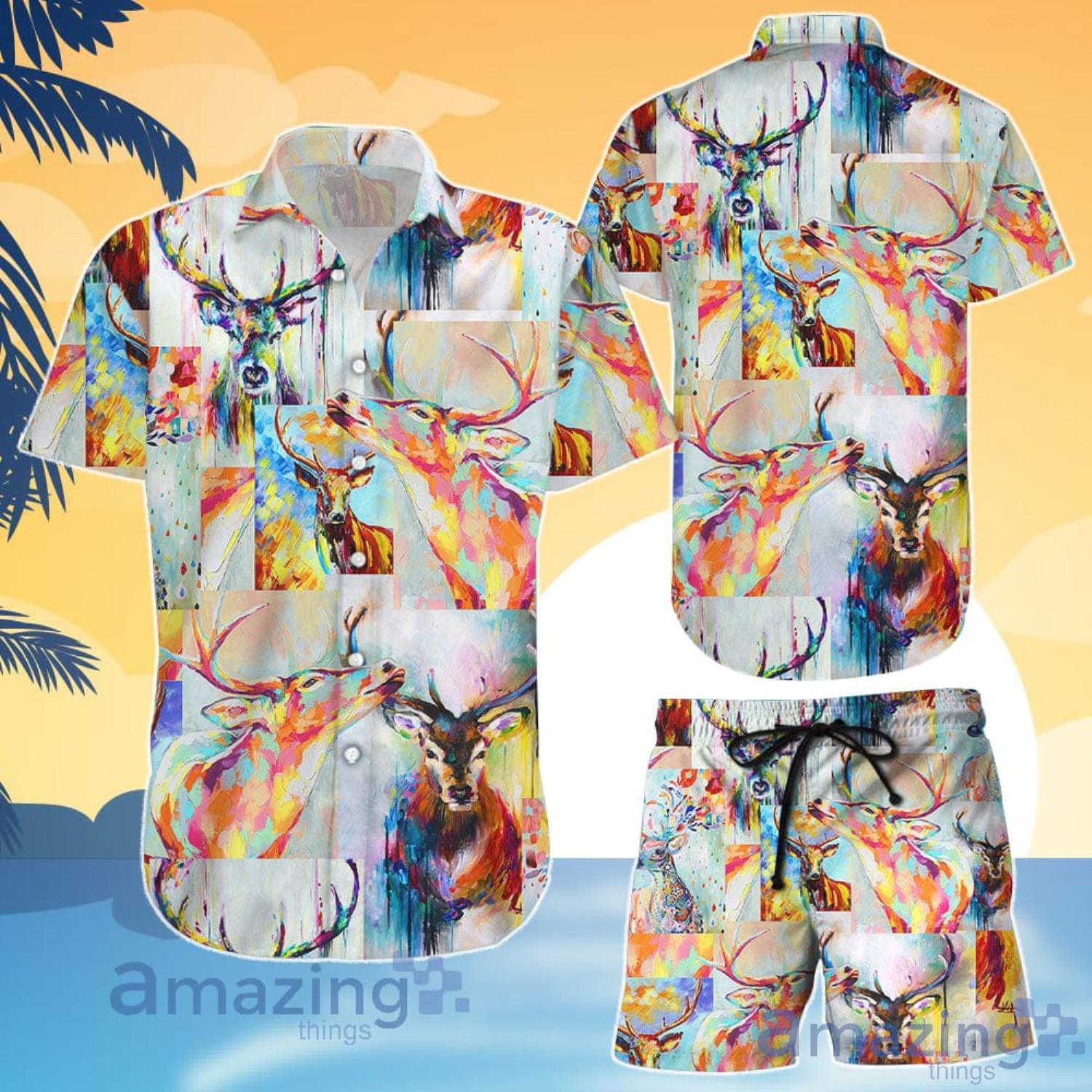 Some of the Deer Hunting Lover Deer Oil Painting Colorful Hawaiian Shirt And Shorts photos