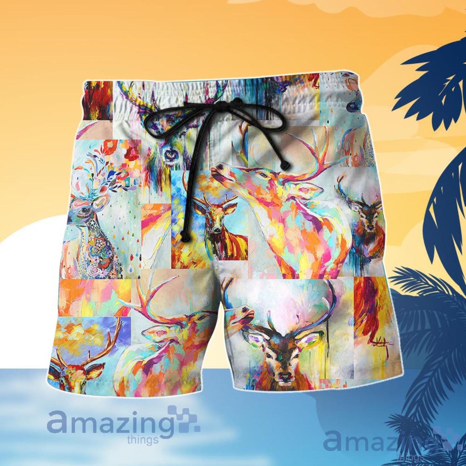 Deer Hunting Lover Deer Oil Painting Colorful Hawaiian Shirt And Shorts Details: