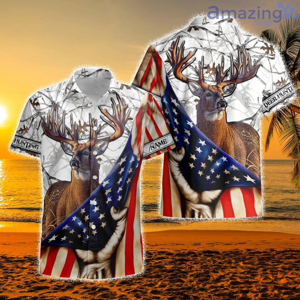 Deer Hunting Pulling Us Flag Multicolored Personalized Hawaiian Shirt Details: