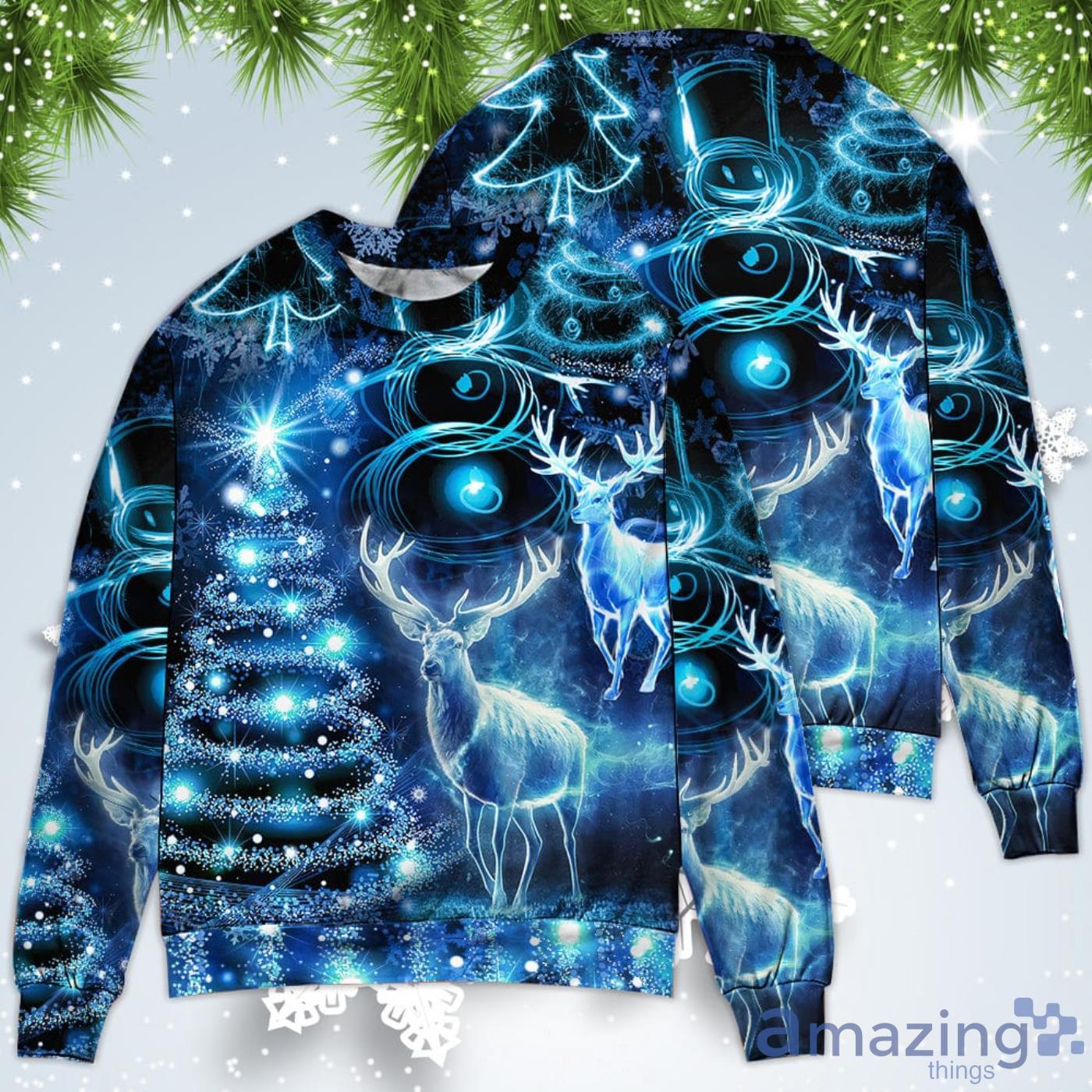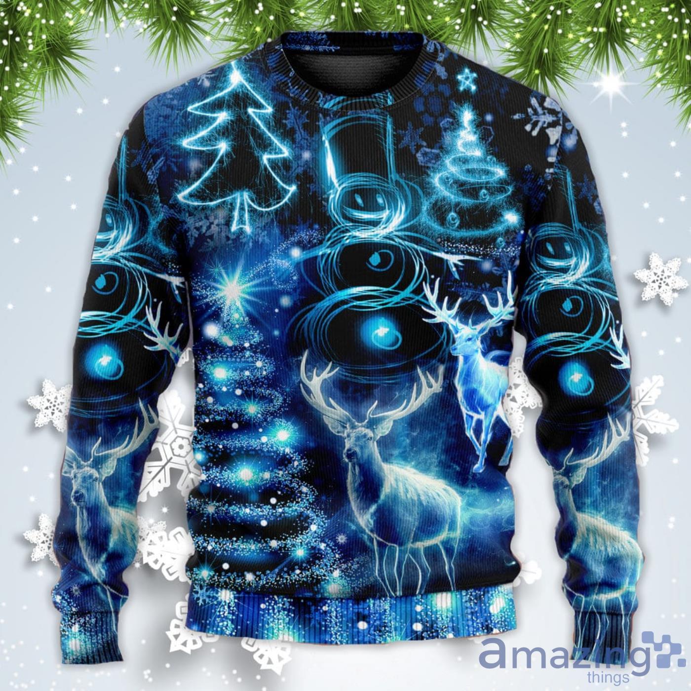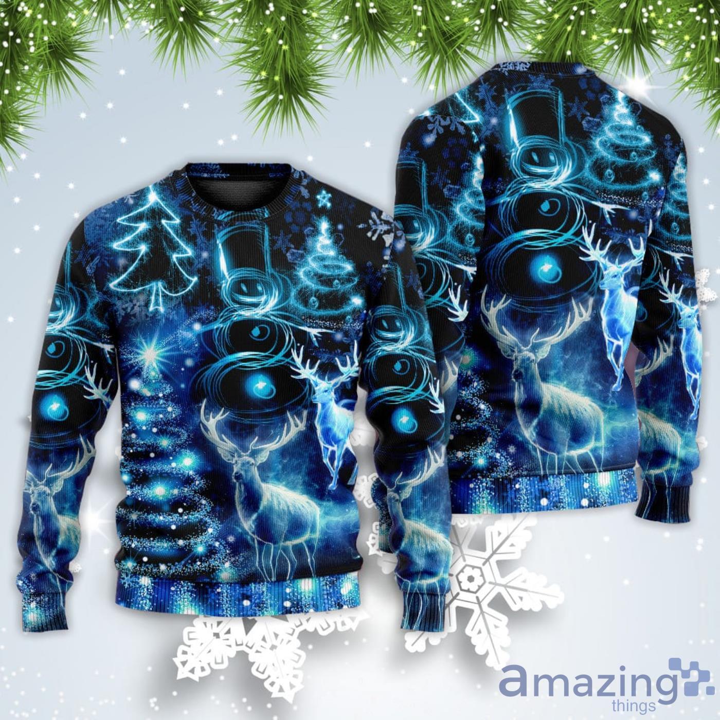 Deer Snowman Tree Glow Light Style Christmas Sweatshirt Sweater