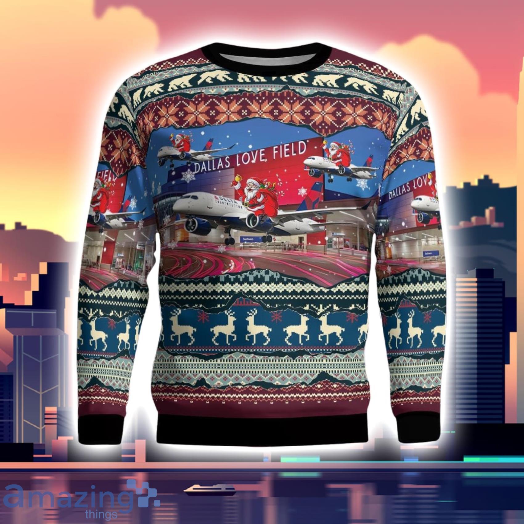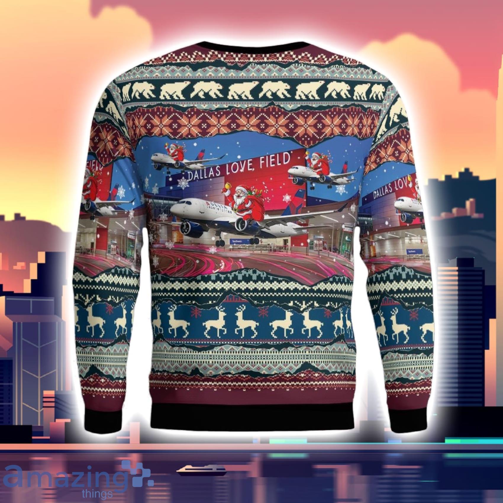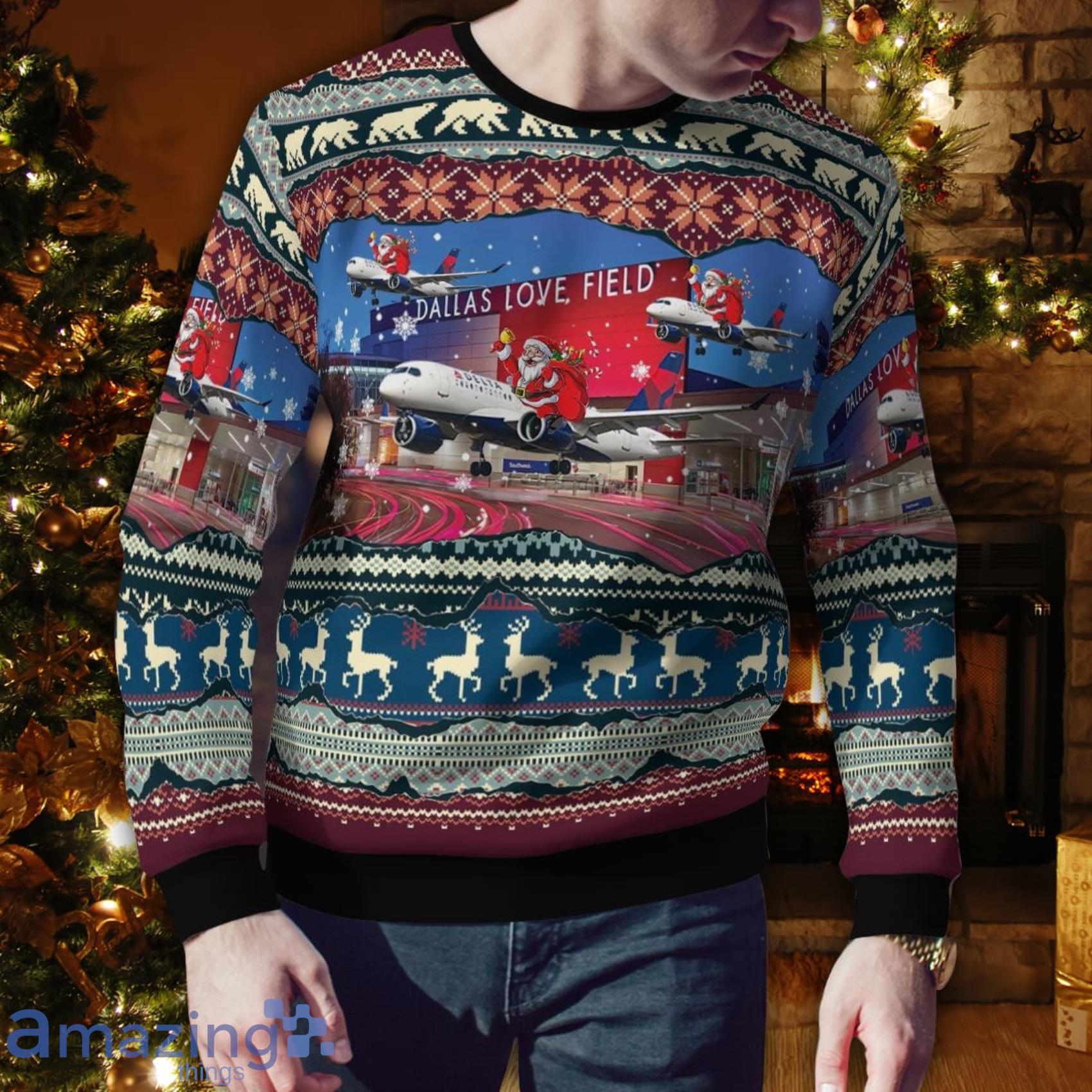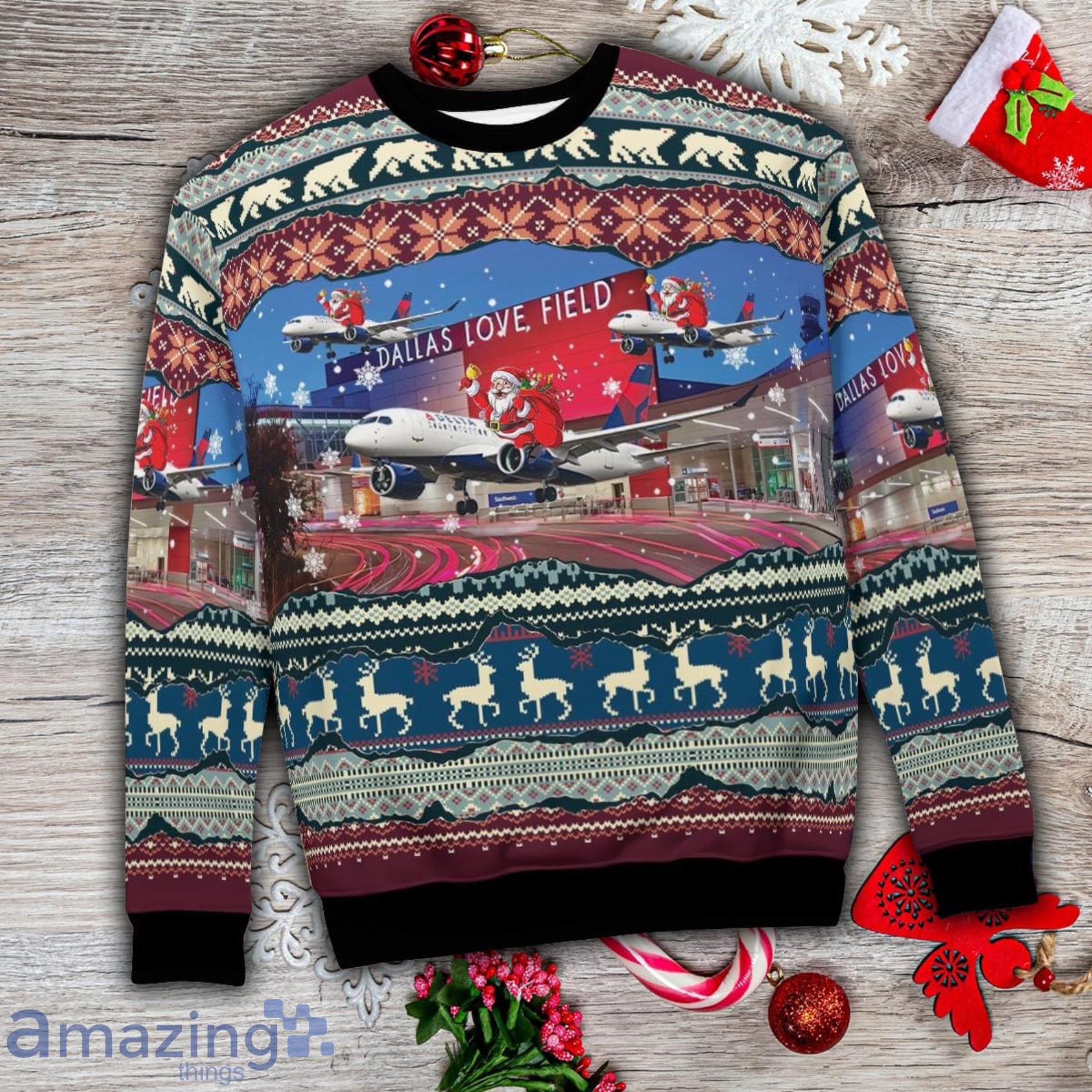 Delta Air Lines Airbus A220 300 Flying Over Dallas Love Field Christmas 3D Ugly Sweater Informations:
