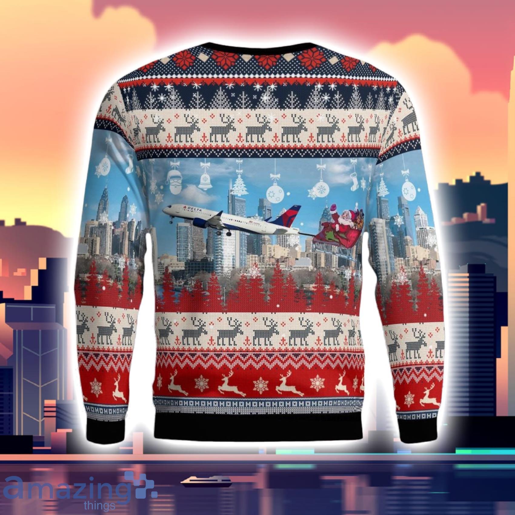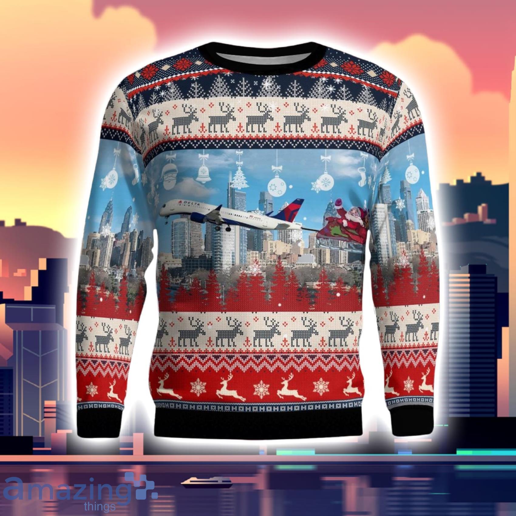 Delta Air Lines Airbus A220 300 With Santa Over Philadelphia Christmas 3D Ugly Sweater Informations: