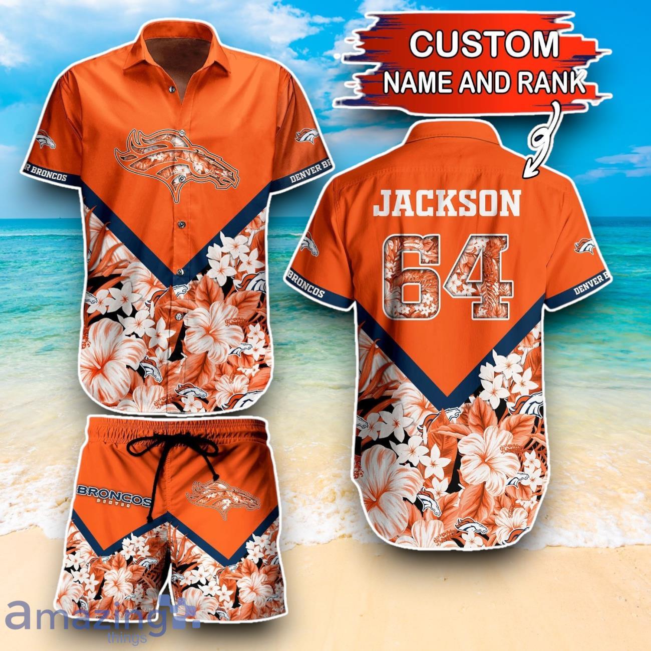 Denver Broncos Combo Hawaiian Shirt And Shorts Custom Number & Name Trendy Combo For Fans Details: