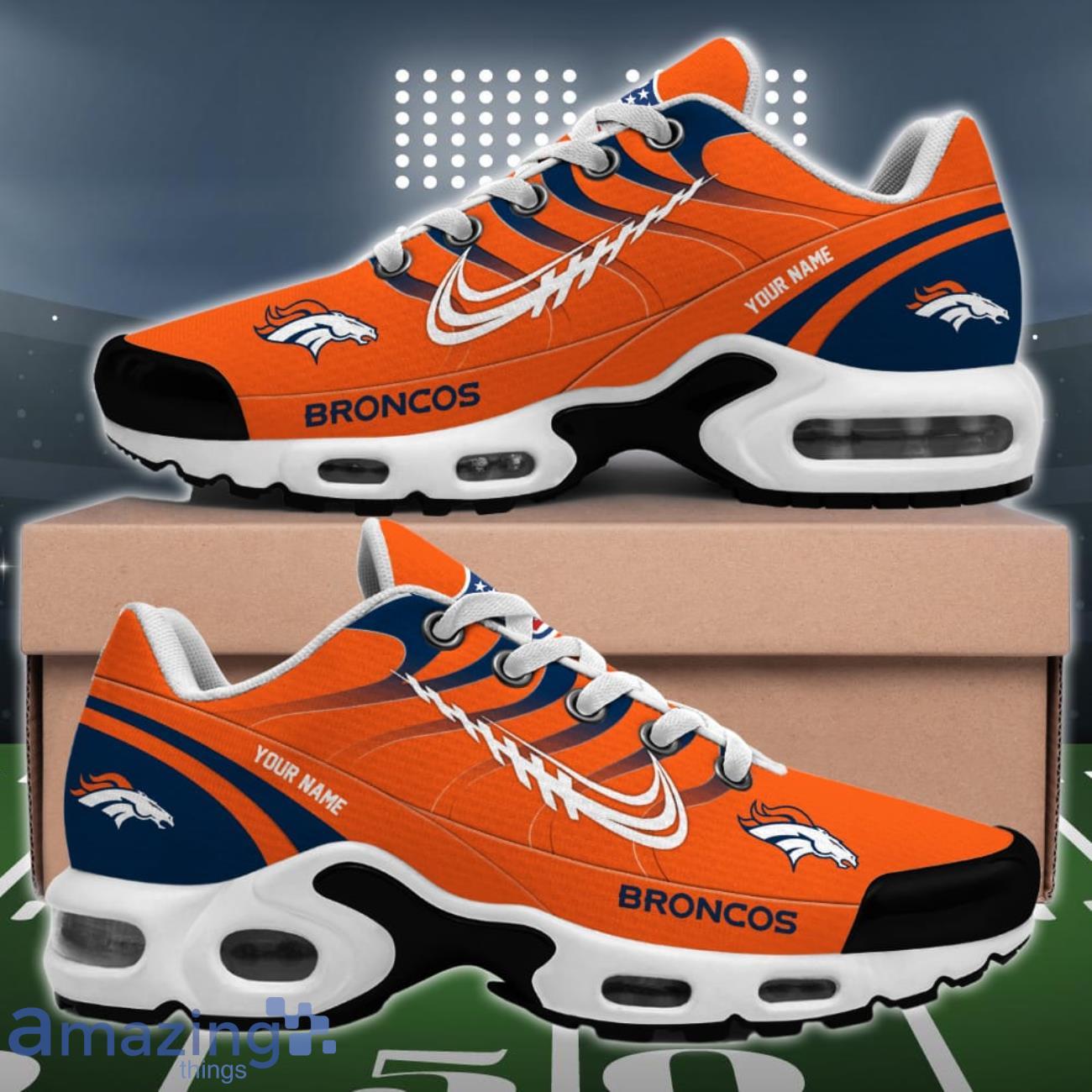 Crafted with utmost precision, these custom kicks feature the iconic Denver Broncos logo, proudly displaying your undying loyalty to the team. The vibrant colors and sleek design are sure to turn heads wherever you go, making you the envy of fellow fans.