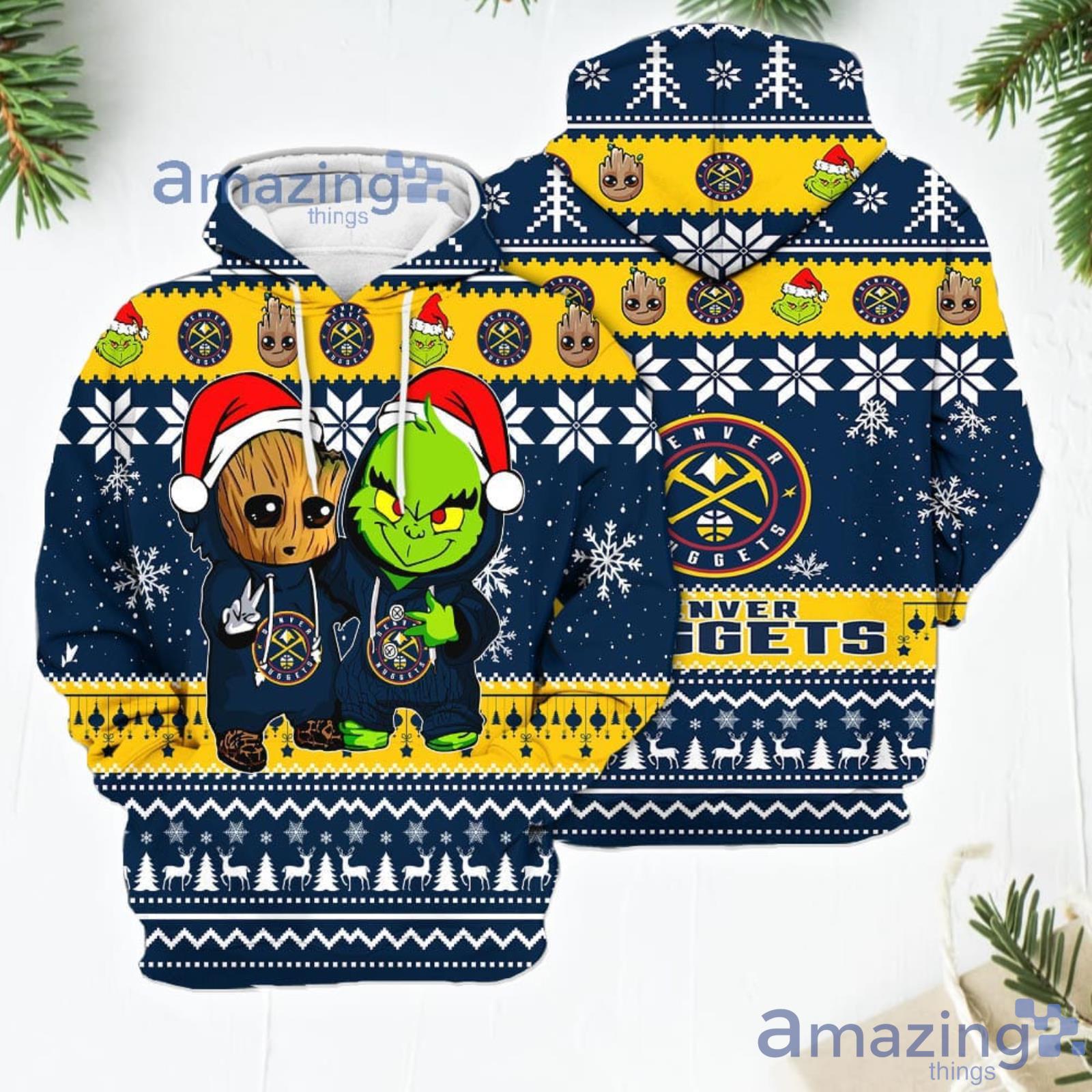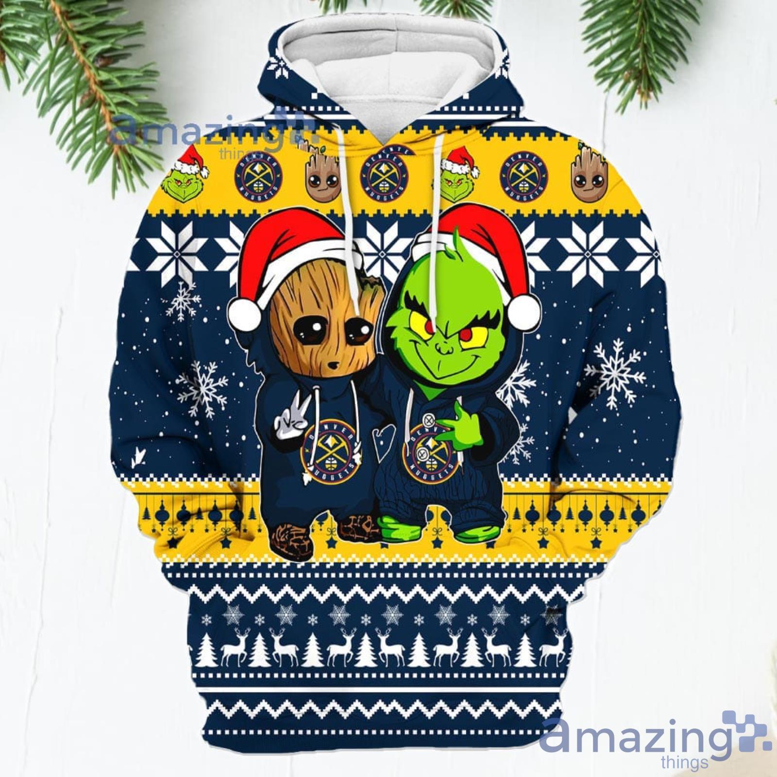 Denver Nuggets Baby Groot And Grinch Best Friends New Trends Christmas Gift 3D Hoodie For Men And Women Information