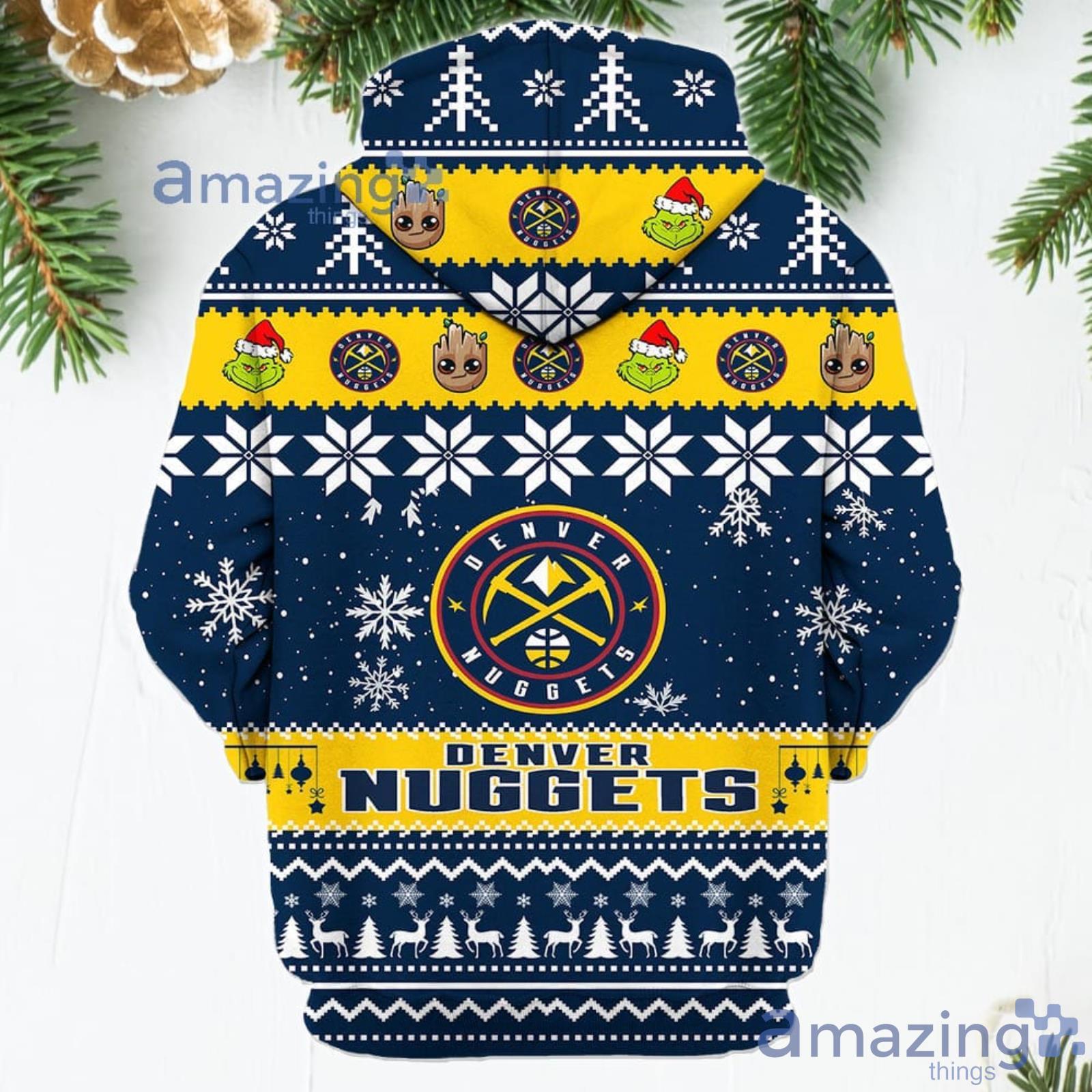 Some of the Denver Nuggets Baby Groot And Grinch Best Friends New Trends Christmas Gift 3D Hoodie For Men And Women photos