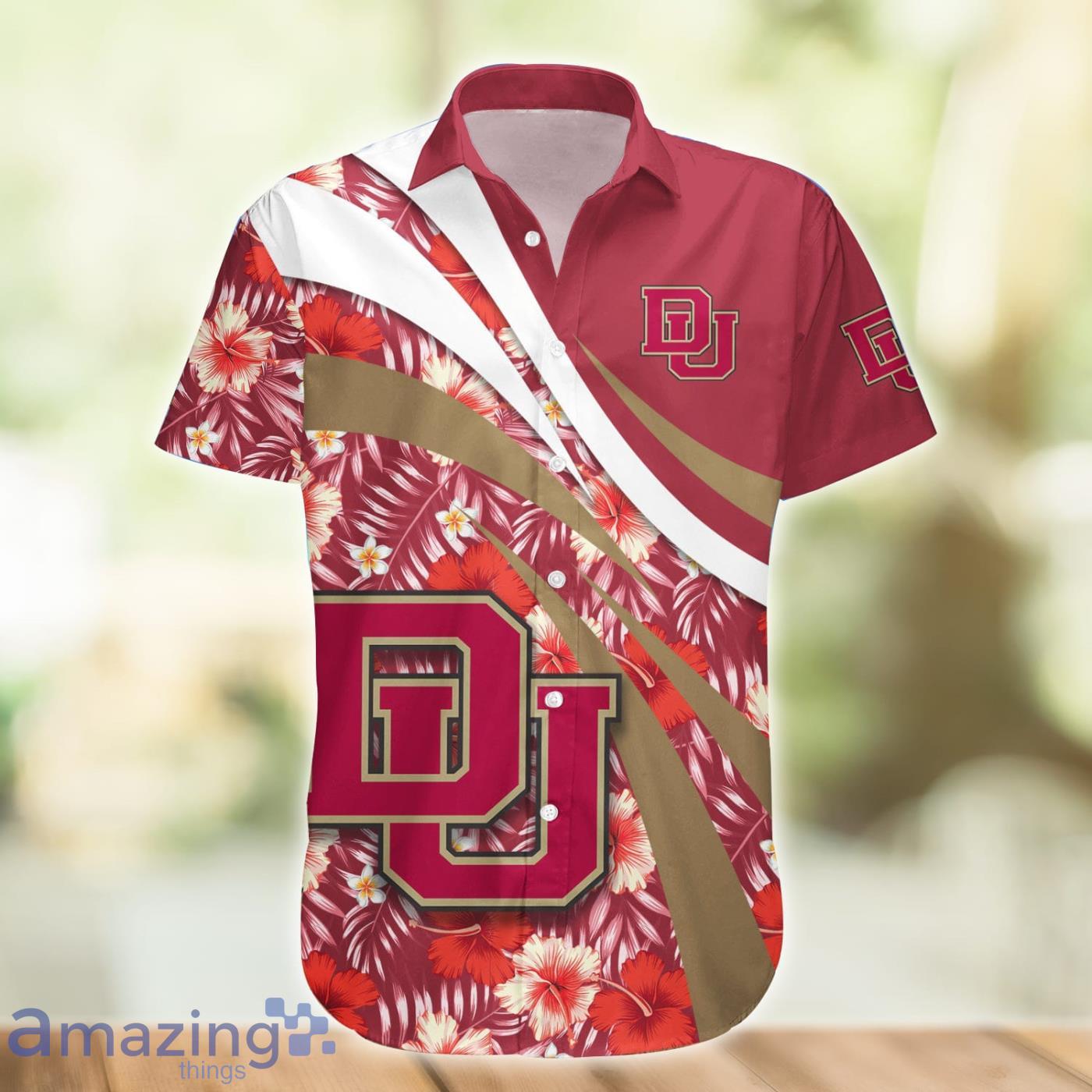 Some of the Denver Pioneers NCAA Hibiscus Flower Pattern Aloha Hawaiian Shirt photos