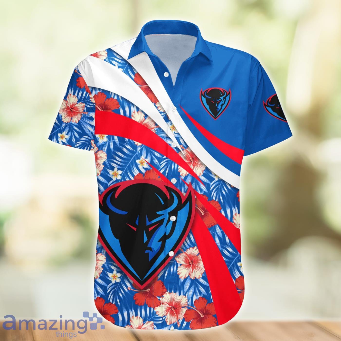 DePaul Blue Demons NCAA Hibiscus Flower Pattern Aloha Hawaiian Shirt Details: