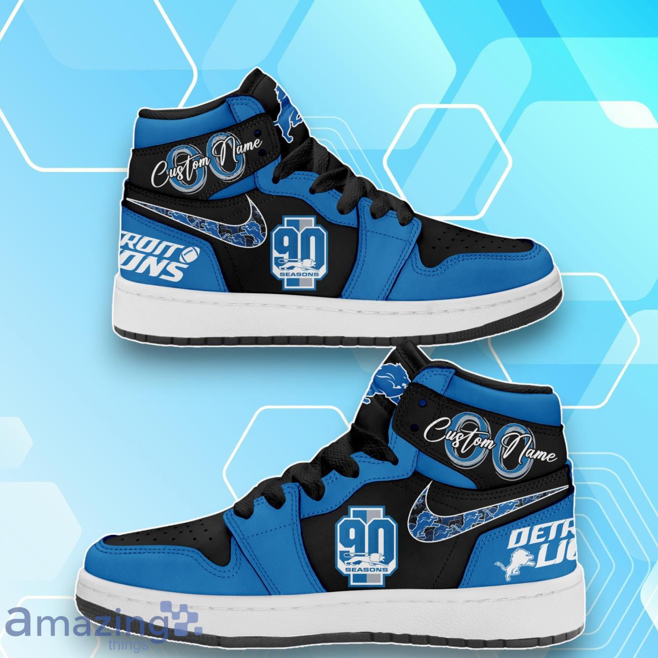 The Detroit Lions Air Jordan Hightop Sneaker 90th Custom Number & Name is a limited edition release, making them a true collector’s item. Don’t miss out on the opportunity to own a piece of Lions history. Grab your pair today and let the world know where your loyalty lies.