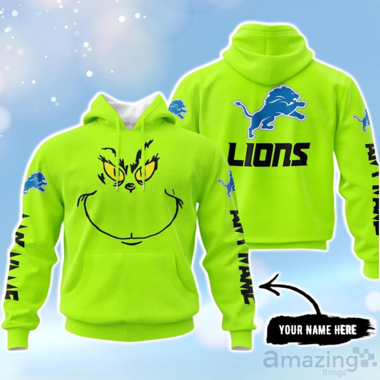 Detroit Lions Grinch Custom Name Hoodie Unisex Neon Green Color Information