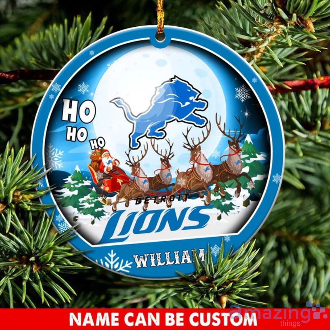 Detroit Lions Santa And 4 Reindeers Logo Team Ornament Christmas