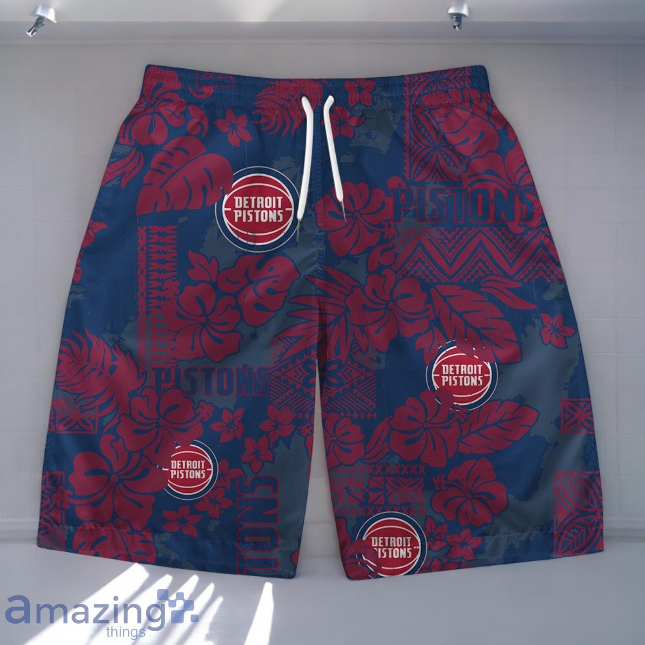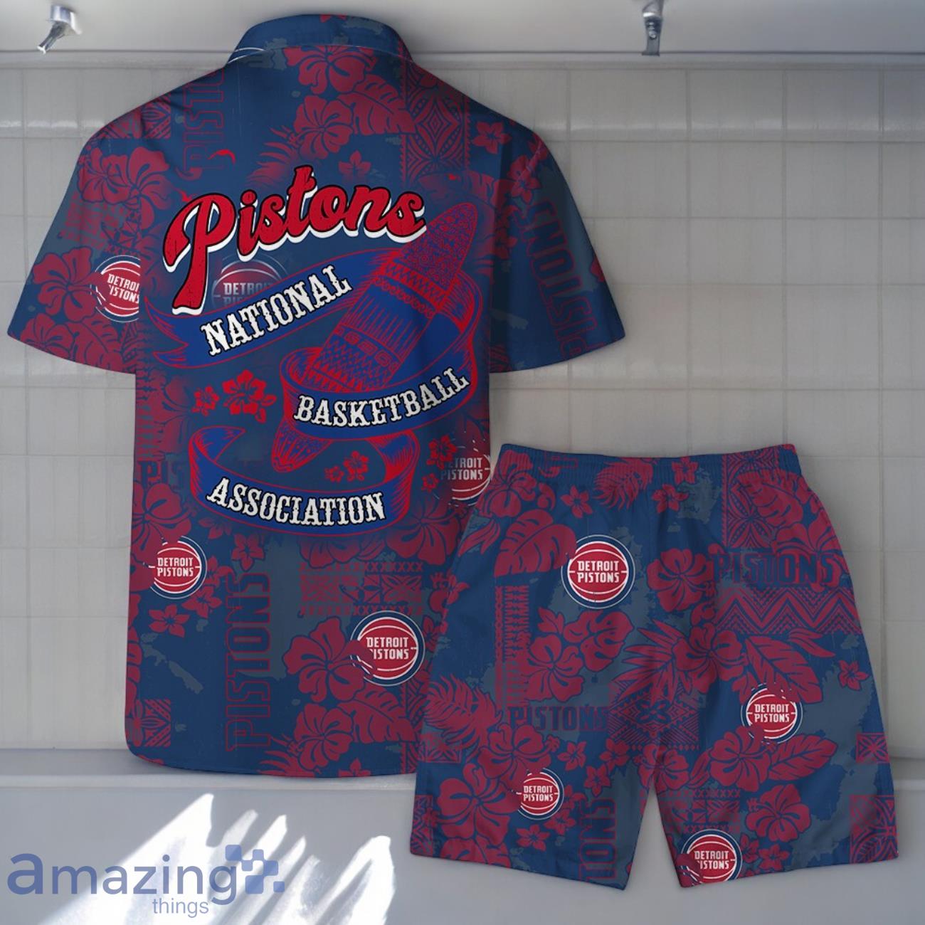 Detroit Pistons Team Logo Pattern Retro Magic Hawaiian Shirt And Short Details: