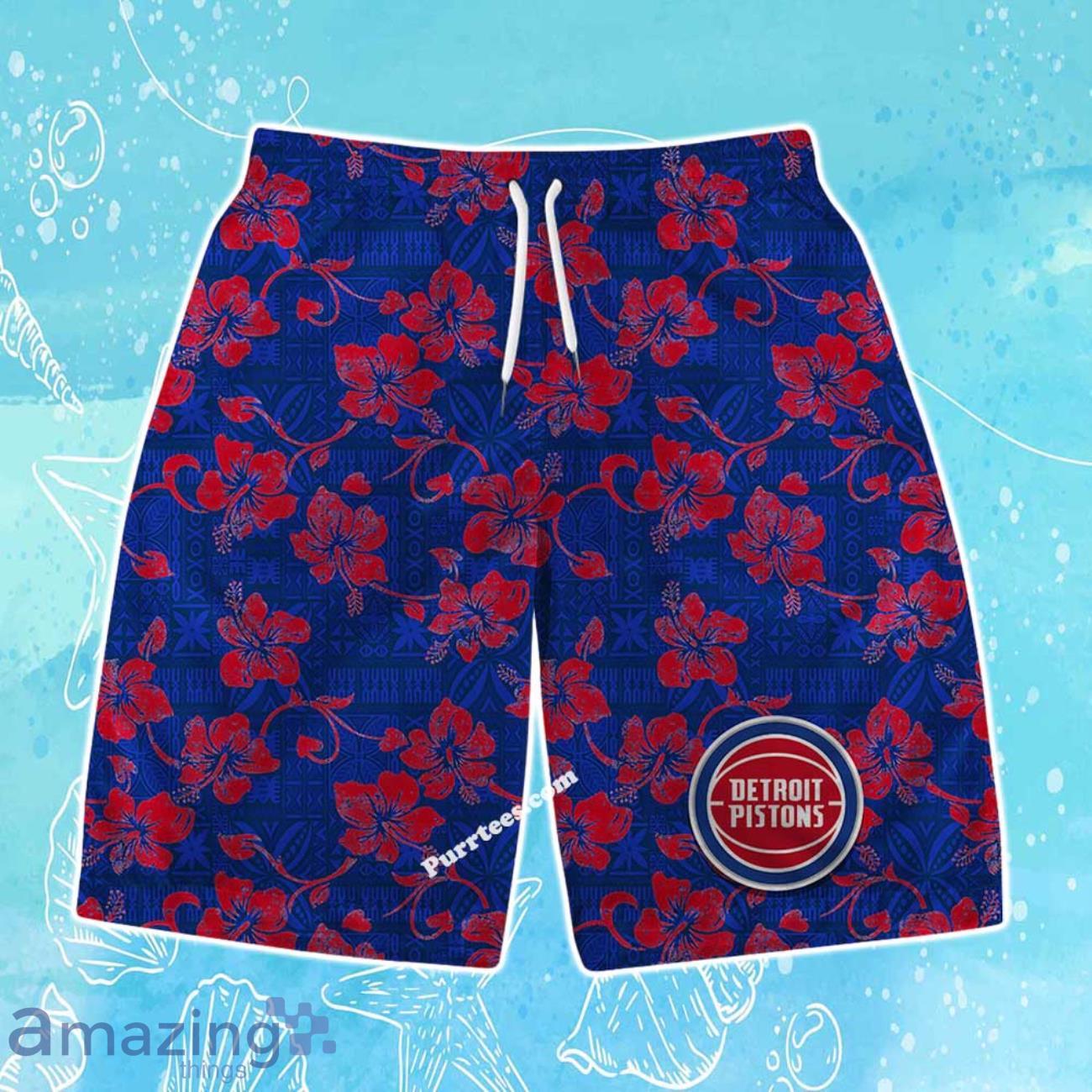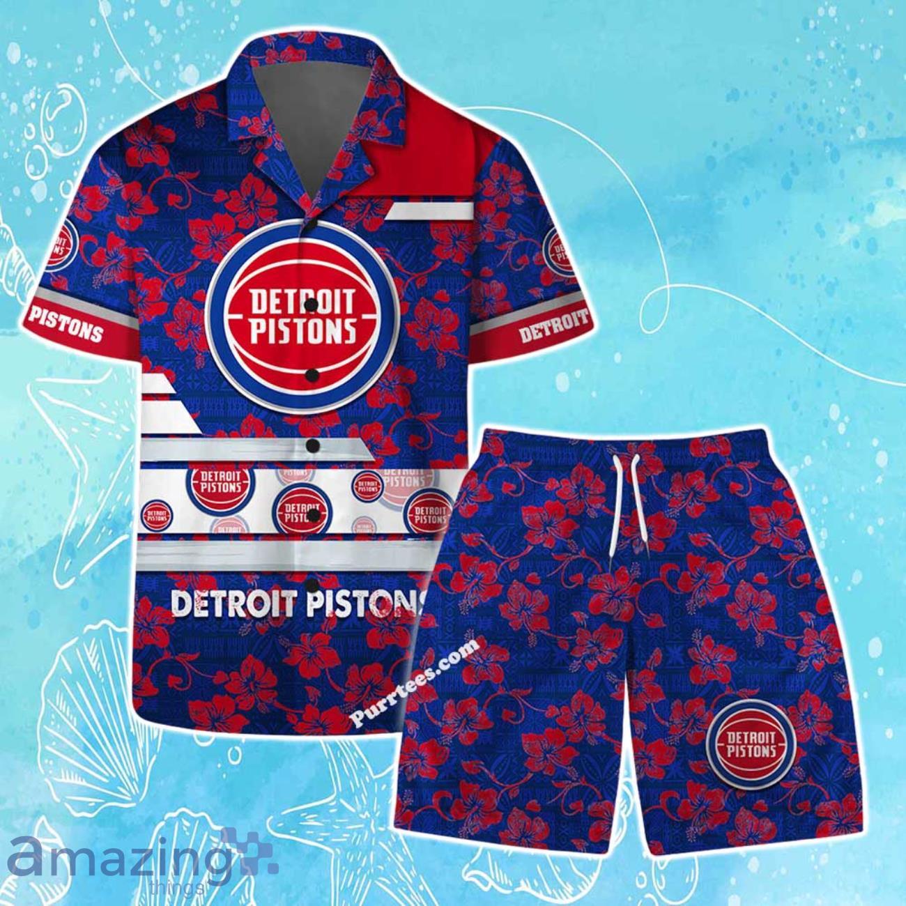 Detroit Pistons Team Logo Pattern Vintage Aloha Hawaiian Shirt & Short