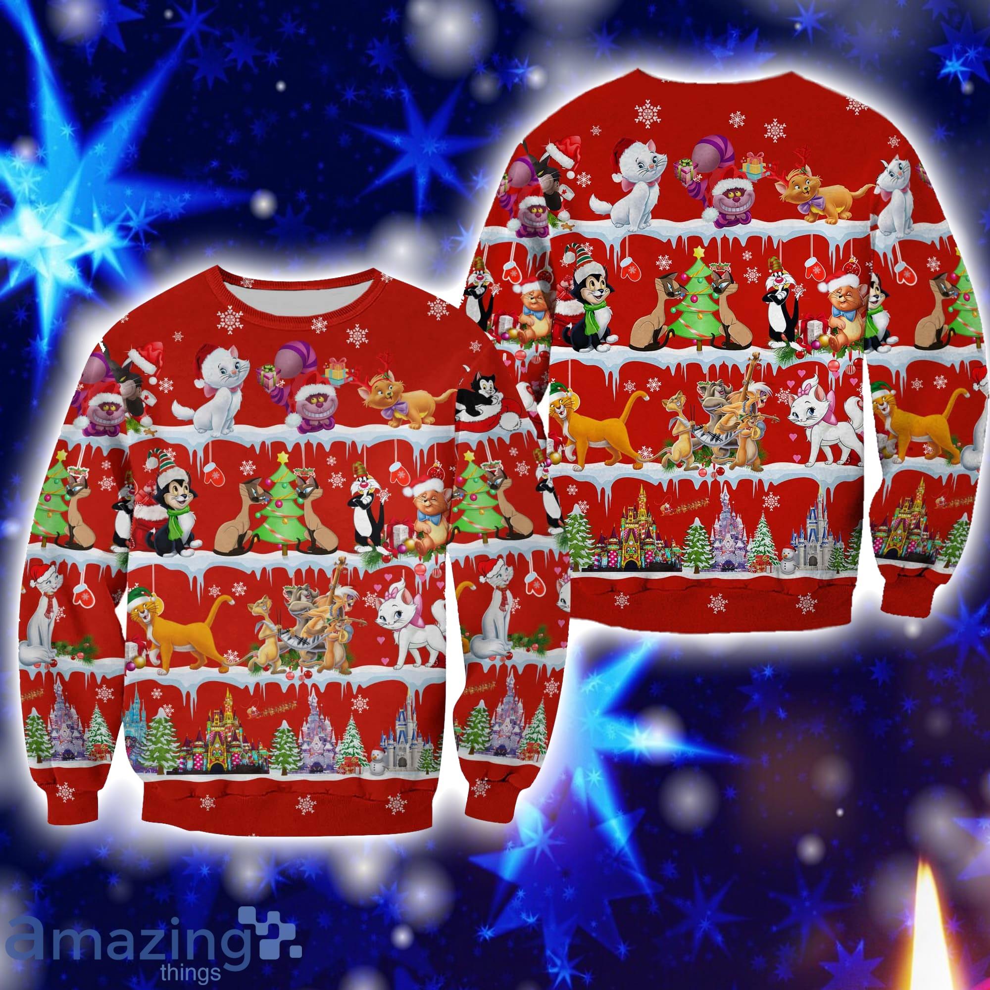 Some of the Disney Cats Pattern Disney Cartoon Red Lovely All Over Print 3D Sweater Gift For Christmas Gift For Christmas Holidays photos