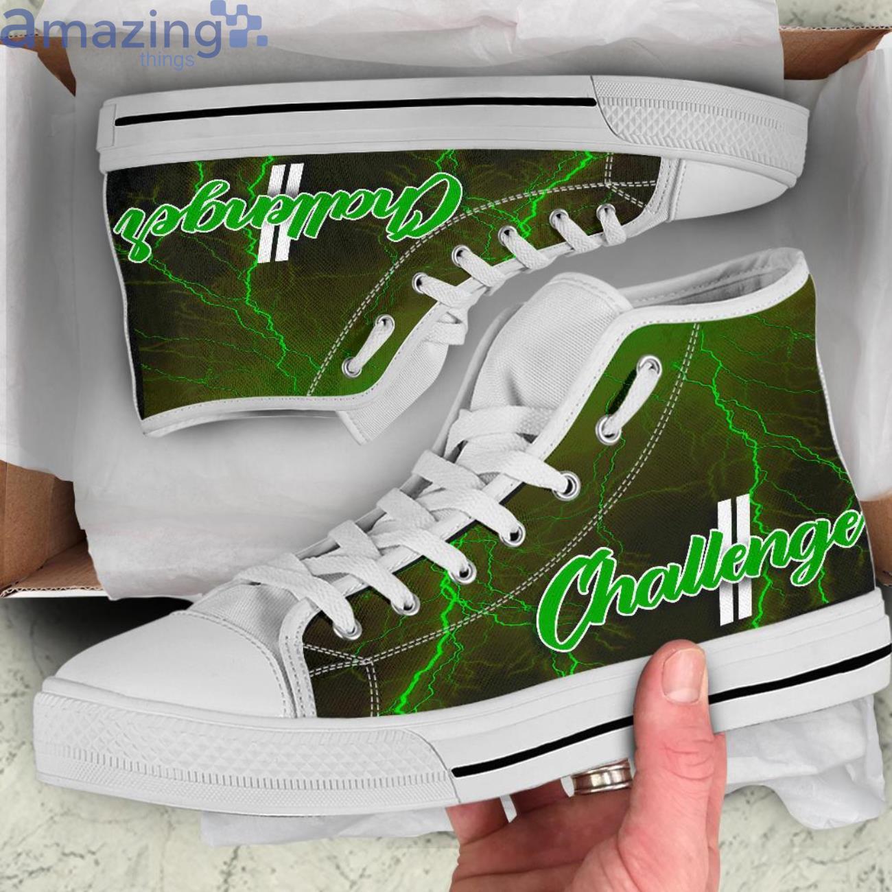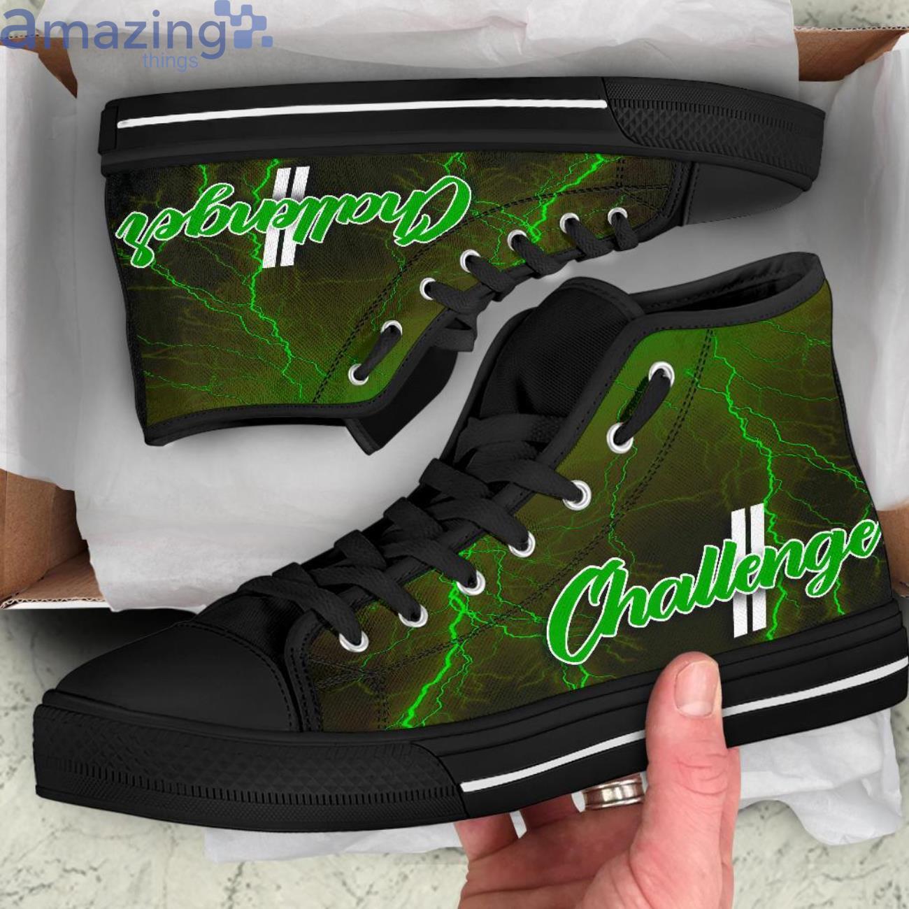 Dodge Challenger Thunder and Lightning Green High Top Shoes
