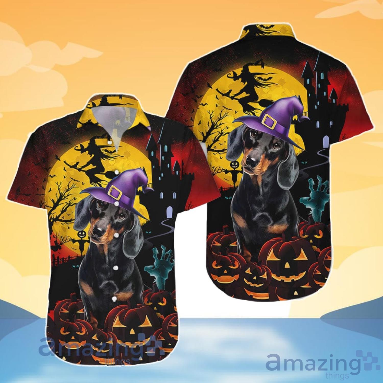 Some of the Dog Lover Dachshund Happy Halloween Witch Pumpkin Hawaiian Shirt And Shorts photos