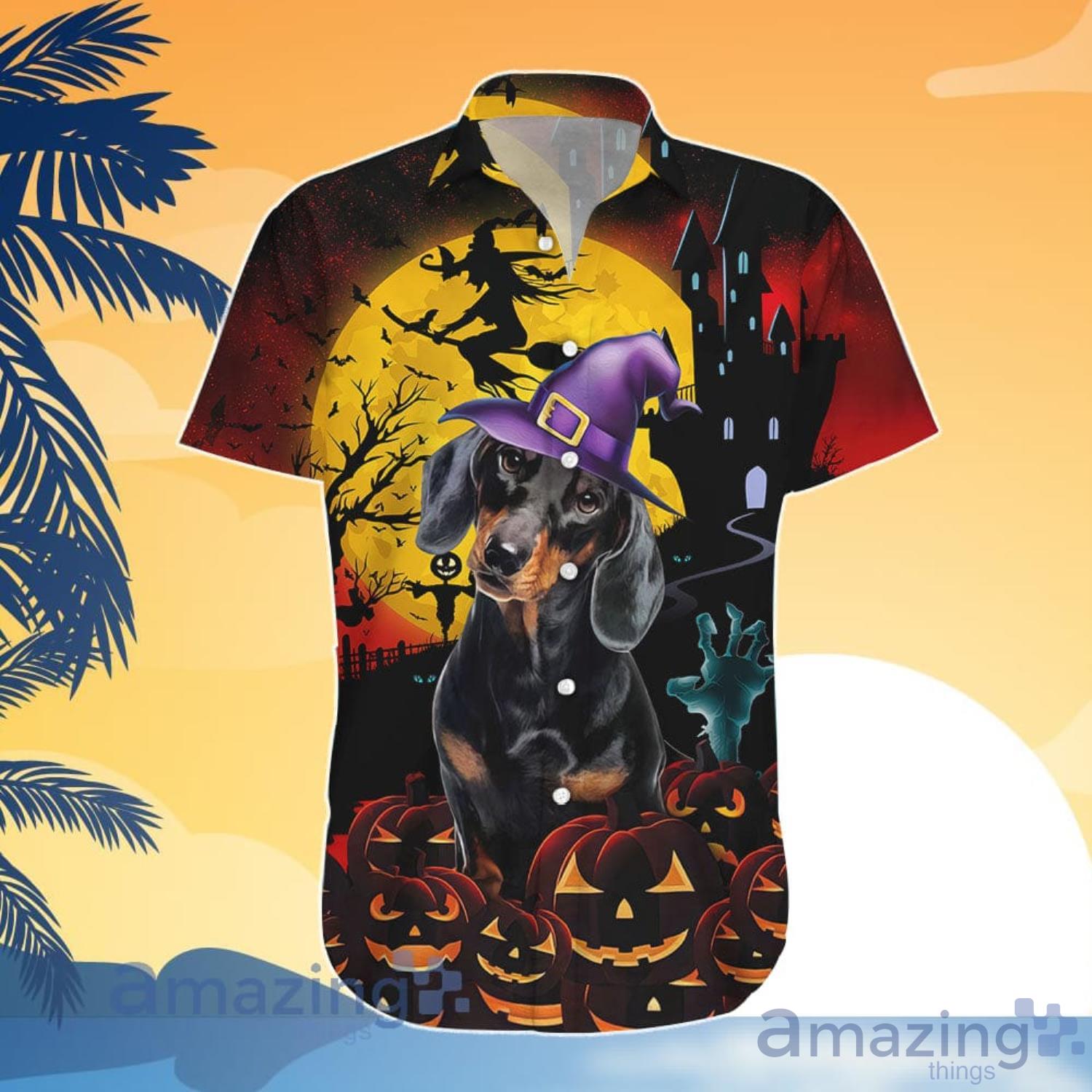 Dog Lover Dachshund Happy Halloween Witch Pumpkin Hawaiian Shirt And Shorts Details: