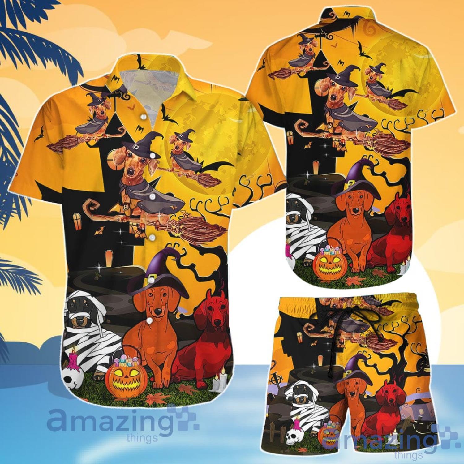 This design is available in a combo Hawaiian shirt & shorts. You can also get it separate. The default option is only one shirt or one pair of shorts. You have chosen a combo to get them both. This combo Dog Lover Dog Halloween Witch Pumpkin Hawaiian Shirt And Shorts is perfect to go to the beach. Get yours now or make a great gift.