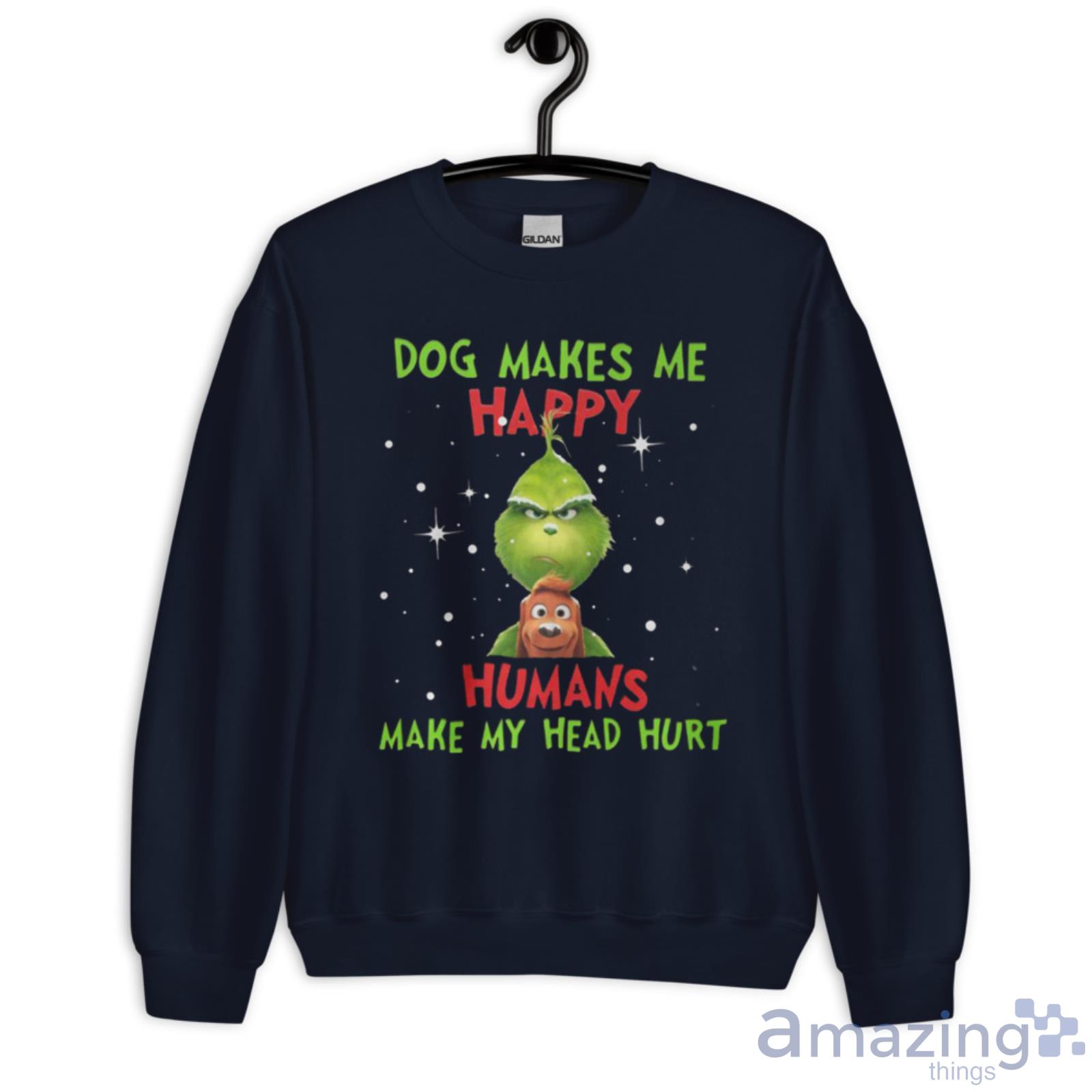 Dog Makes Me Happy Humans Make My Head Hurt The Grinch Christmas Max Dog Tee Shirt Details