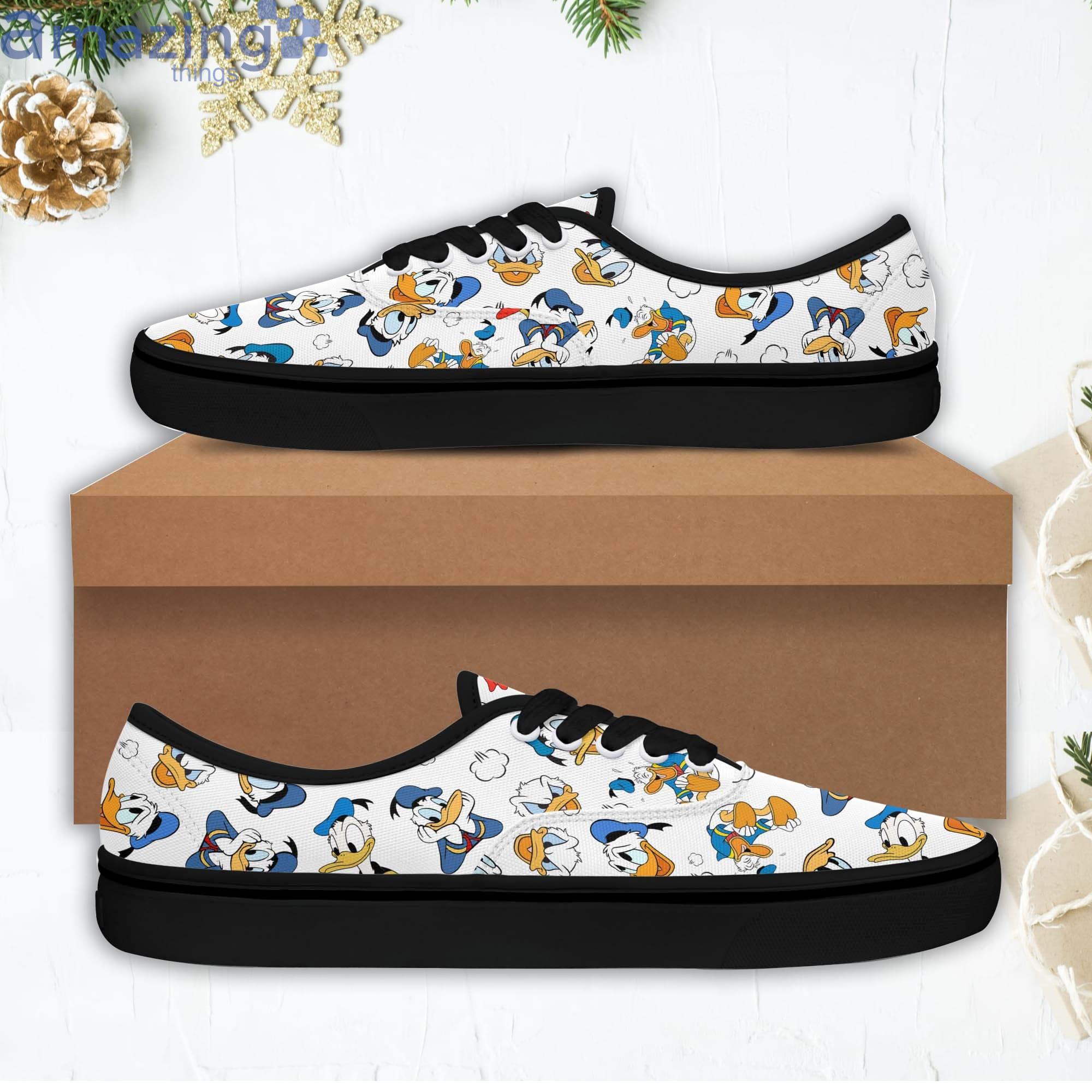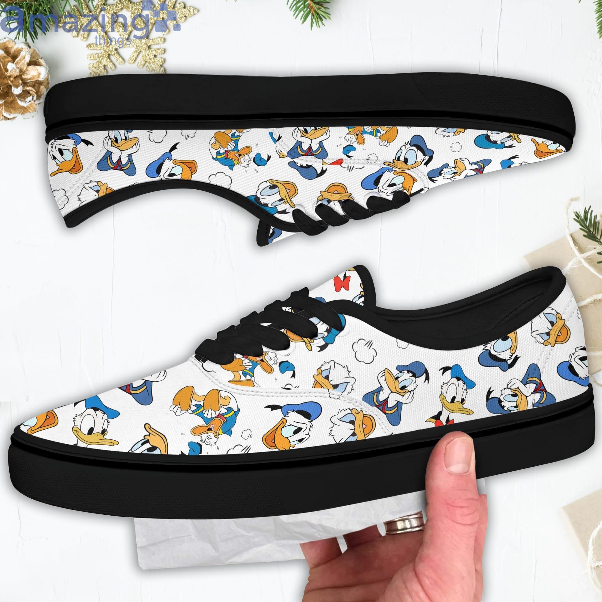 Some of the Donald Ducks Blue Orange Disney Cartoon Low Top Slip On Lace Up Canvas Vans Shoes photos