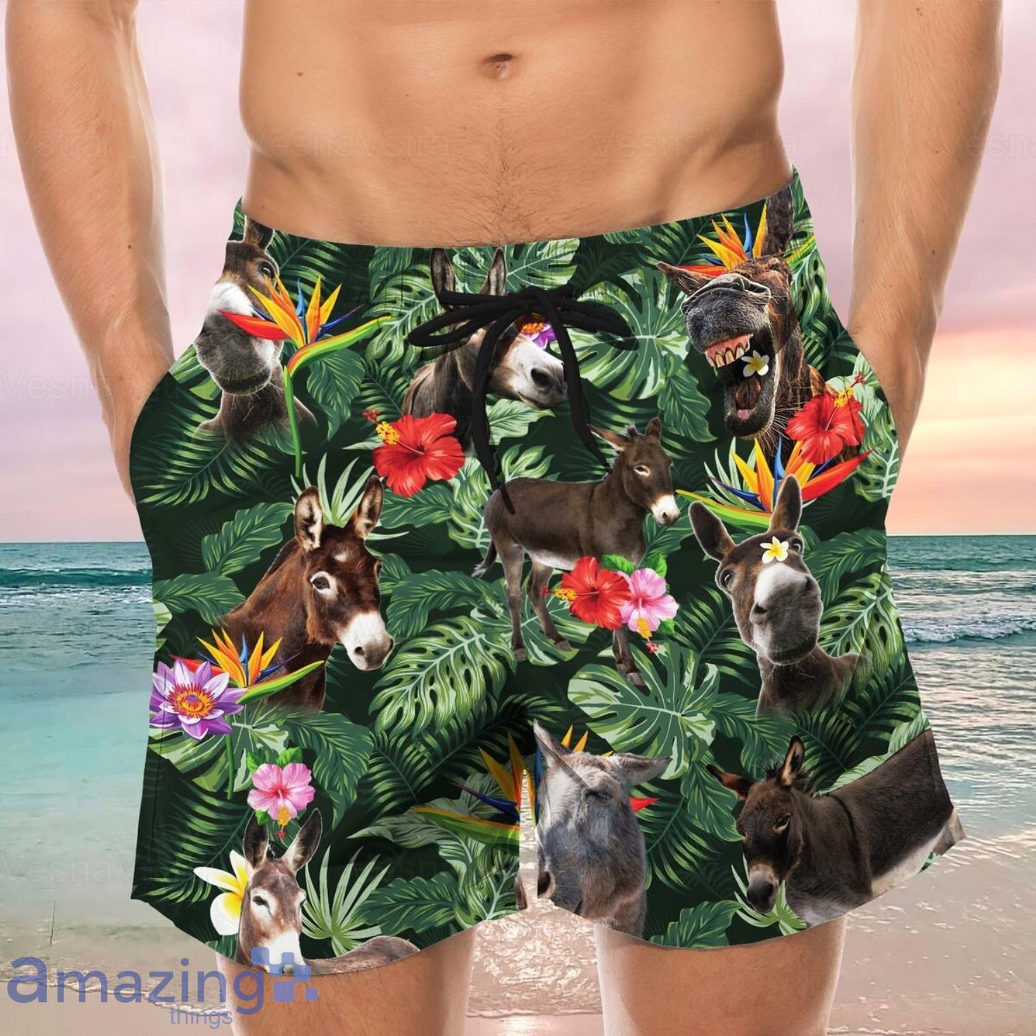 Donkey Hawaiian Shirt And Shorts Man Funny Donkey Shirt Donkey Button Up Shirt