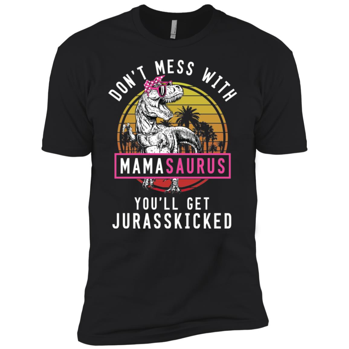The charm of this cute shirt lies in its clever combination of a classic dinosaur theme with the modern strength of mothers. The term “Mamasaurus” quickly conjures an image of a powerful, ancient protector – much like a mother safeguarding her young. Paired with the witty phrase “You’ll Get Jurasskicked”, it delivers a clear, humorous warning that you don’t mess with a mom when her protective instincts kick in. It’s a fantastic conversation starter and brings a smile to anyone who sees it.