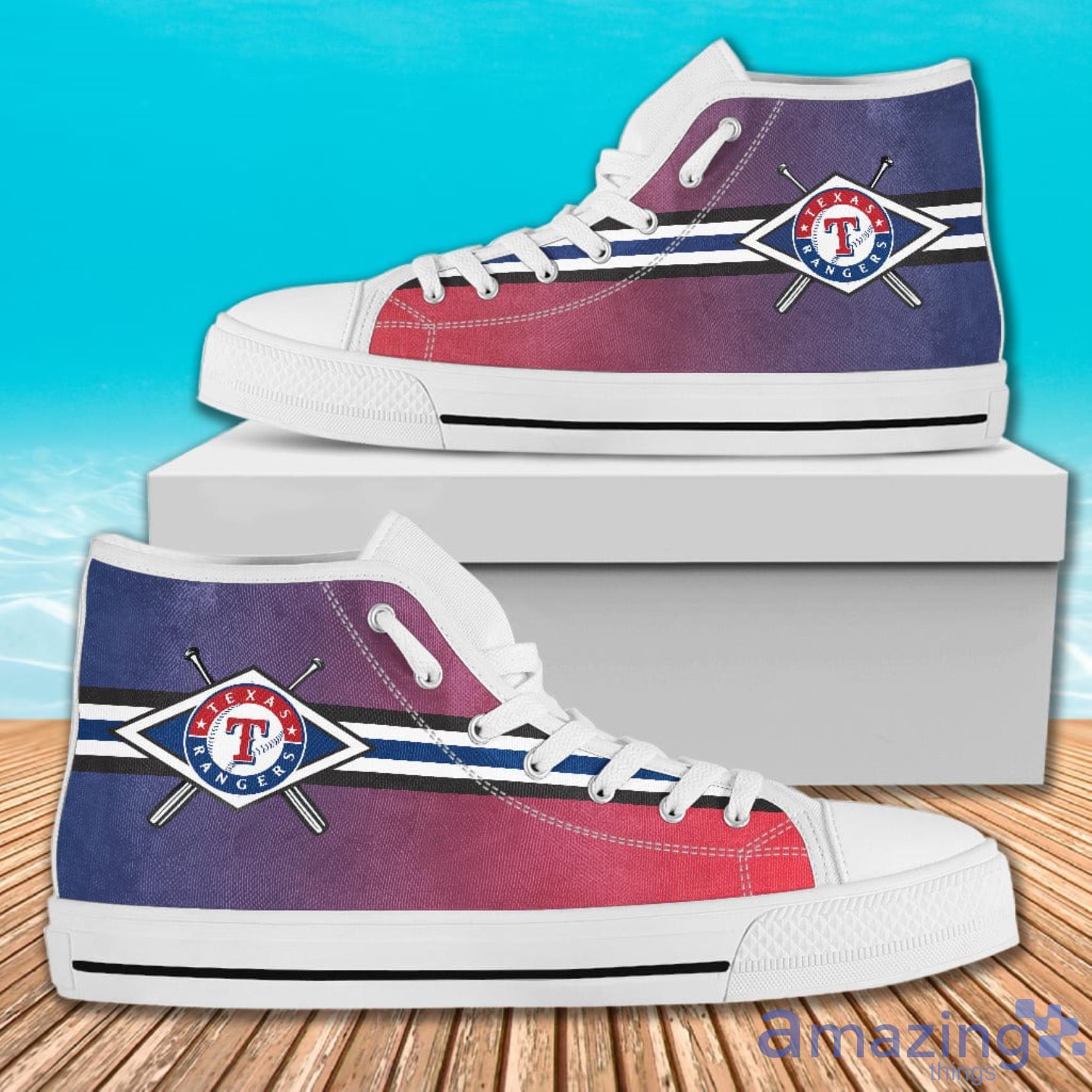 These shoes are designed to be unisex, so both men and women can enjoy the unique style and comfort of these high-top sneakers. They are available in a range of sizes to fit all foot sizes and shapes, making them the perfect gift for any Texas Rangers fan.