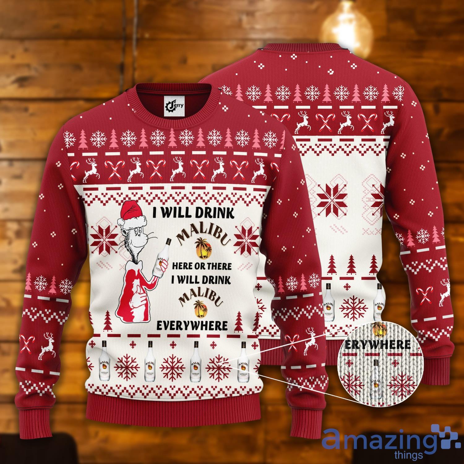 Dr. Seuss I Will Drink Malibu Rum Here Or There Ugly Christmas Sweater