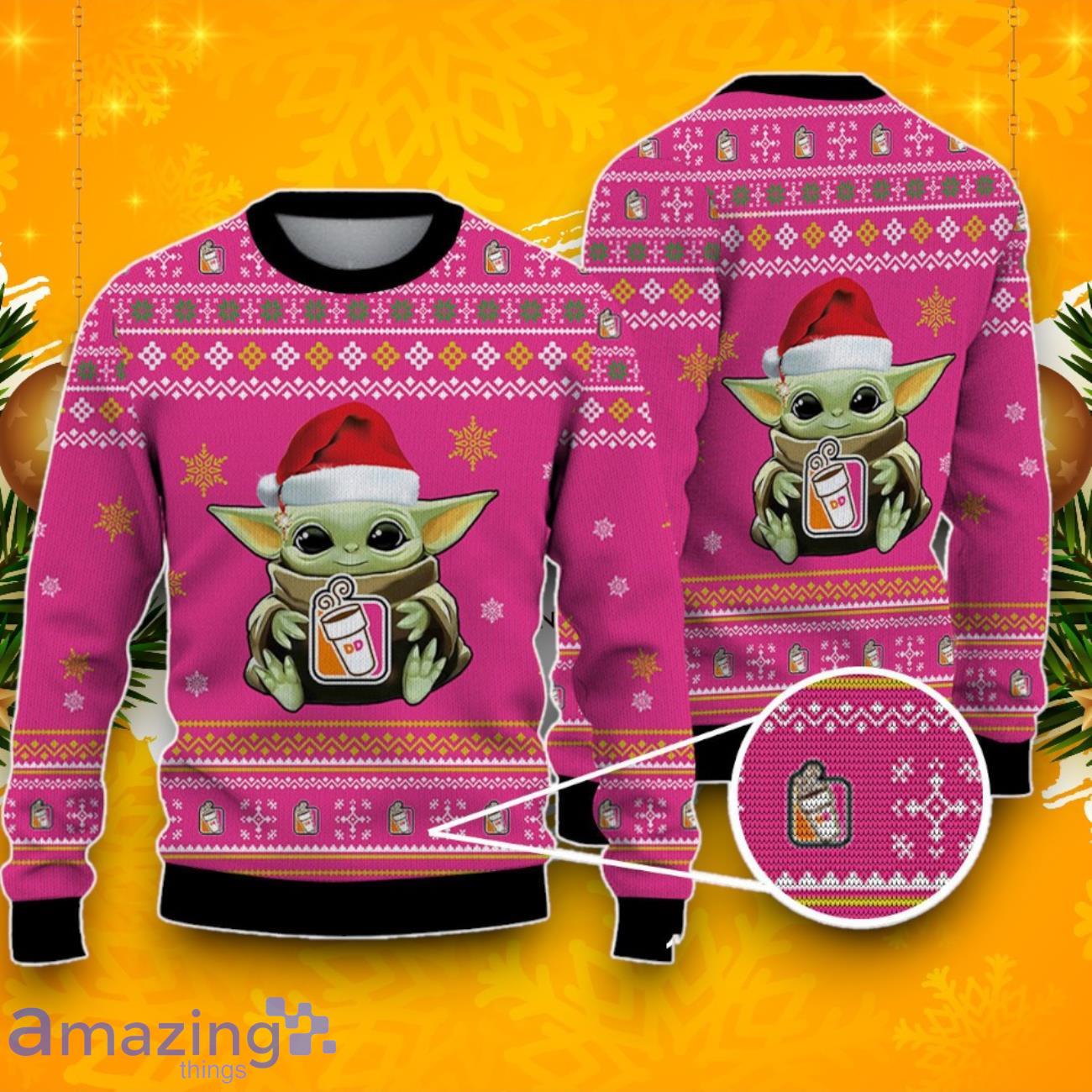 Whether you’re attending an ugly sweater party or simply want to add some holiday spirit to your wardrobe, the Dunkin’ Donuts Baby Yoda Ugly Christmas Sweater is the ultimate choice. It’s a unique and fun gift that will bring a smile to anyone’s face.