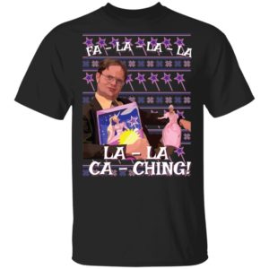 The phrase “Fa La La Ca Ching” is instantly recognizable to viewers of the hit show, The Office. It’s a witty and memorable line delivered by Dwight Schrute as he embraces the entrepreneurial spirit of the holidays, selling Christmas trees. It perfectly captures his unique blend of earnestness and eccentric business acumen. Wearing this shirt isn’t just wearing a holiday design; it’s wearing a piece of iconic comedy history, specifically tied to the festive season and the character of Dwight Schrute.