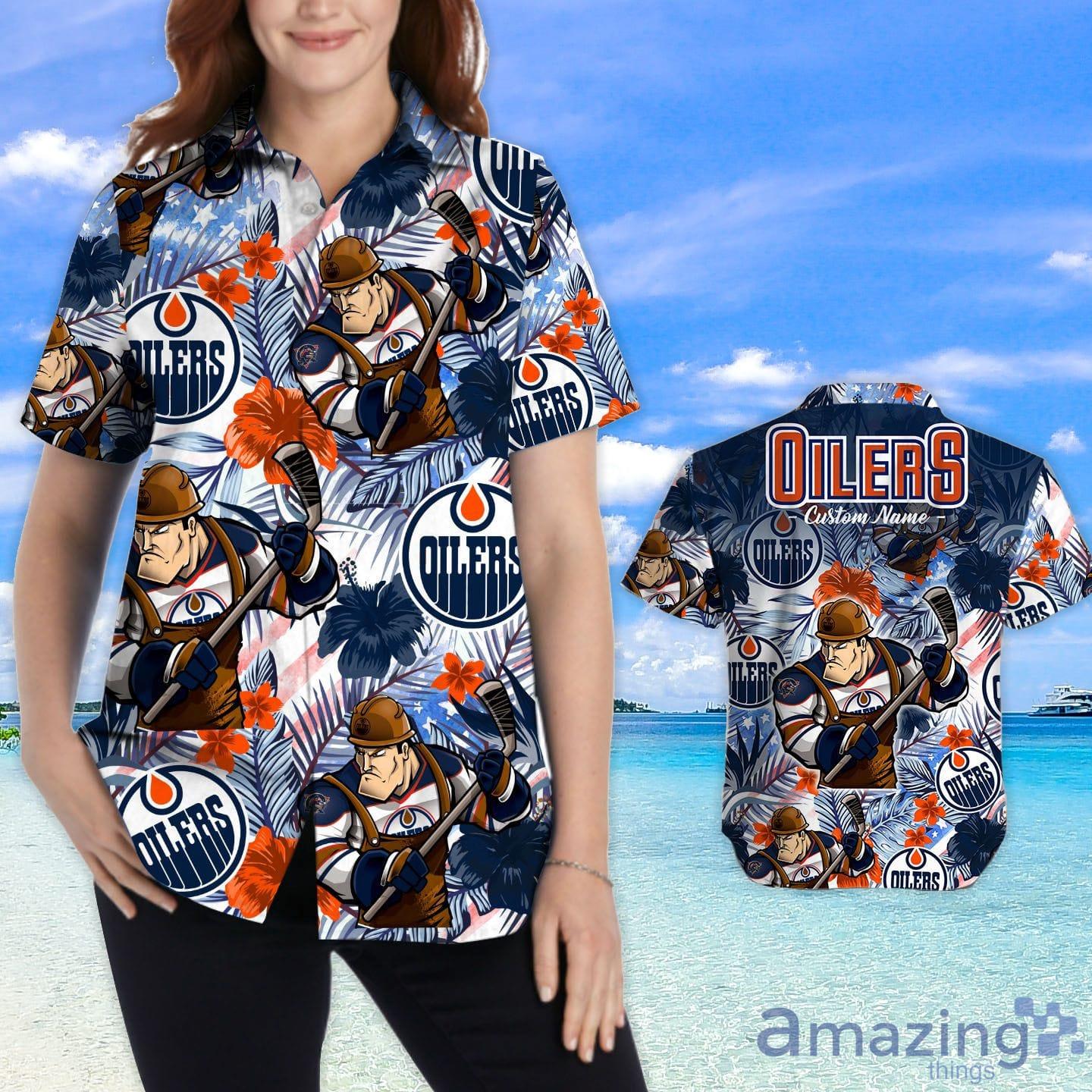Introducing the Hawaiian shirt, perfect for showing your Oilers pride in style! This custom shirt features a tropical floral design with your name printed in bold letters across the back. Whether you’re hitting the beach or just relaxing at home, this shirt is sure to turn heads. Made from 100% cotton, it’s lightweight and comfortable, making it ideal for those hot summer days. So show your team spirit and order yours today!