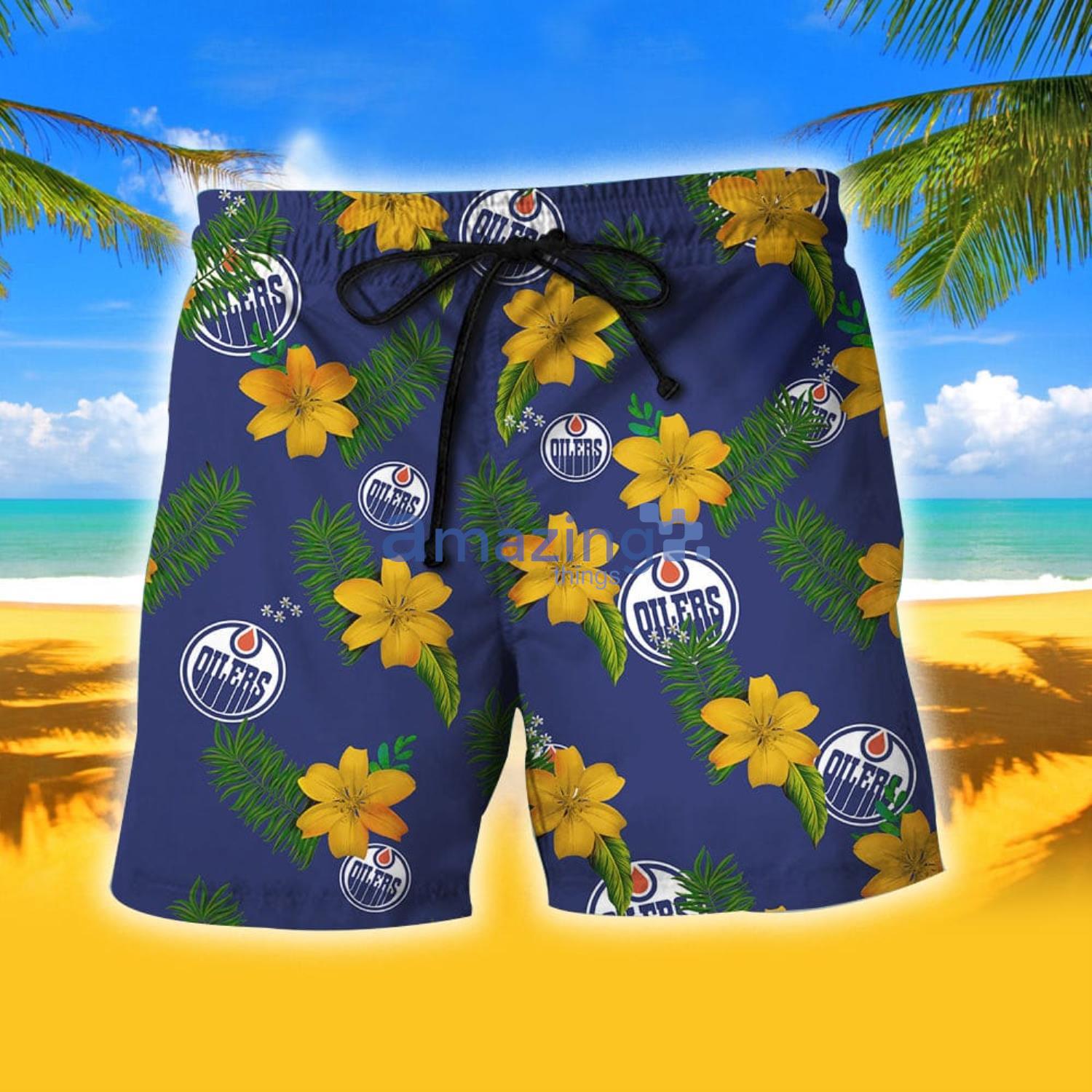 Edmonton Oilers Yellow Flower Tropical Aloha Combo Hawaiian Shirt And Shorts Gift For Summer Details: