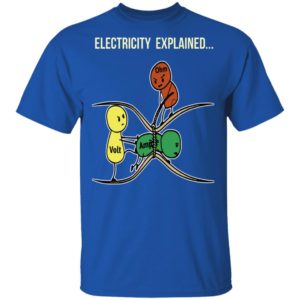 Dive into the world of electricity with a touch of humor and style! The Electricity Explained Funny Cartoon Volt, Amp, Ohm Shirt is the perfect apparel for anyone who appreciates a good laugh while understanding the fundamental principles of electrical circuits. Whether you’re a seasoned electrician, an aspiring engineer, or simply fascinated by how things work, this funny cartoon shirt breaks down the core concepts of Volt, Amp, and Ohm in an engaging way.