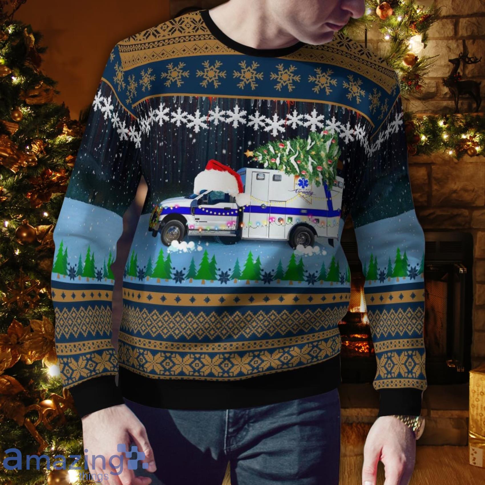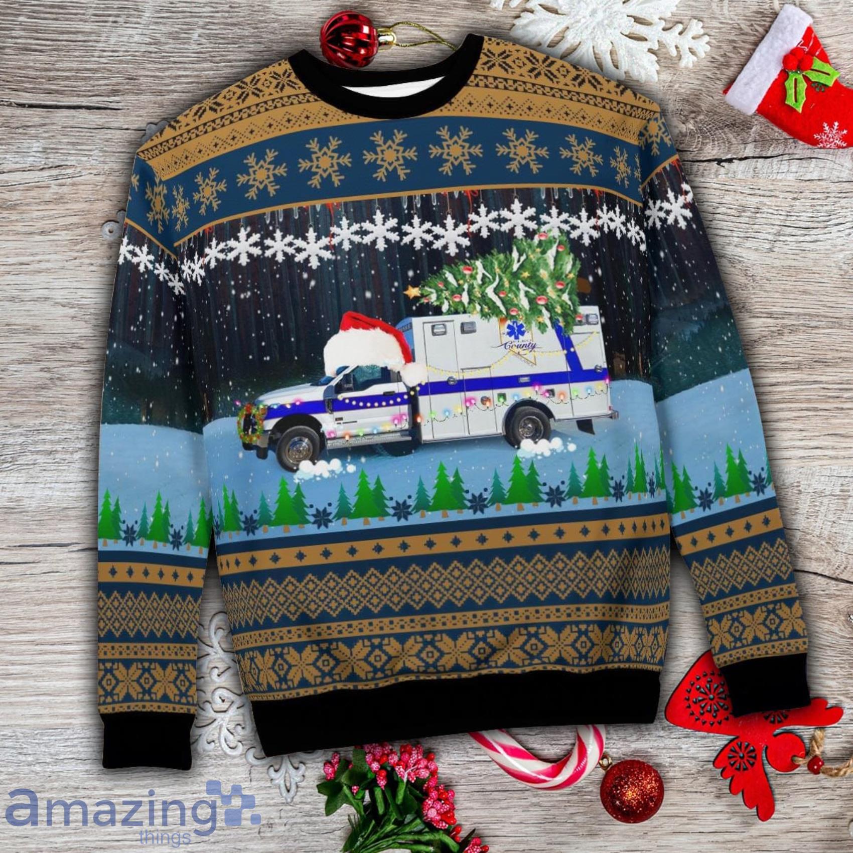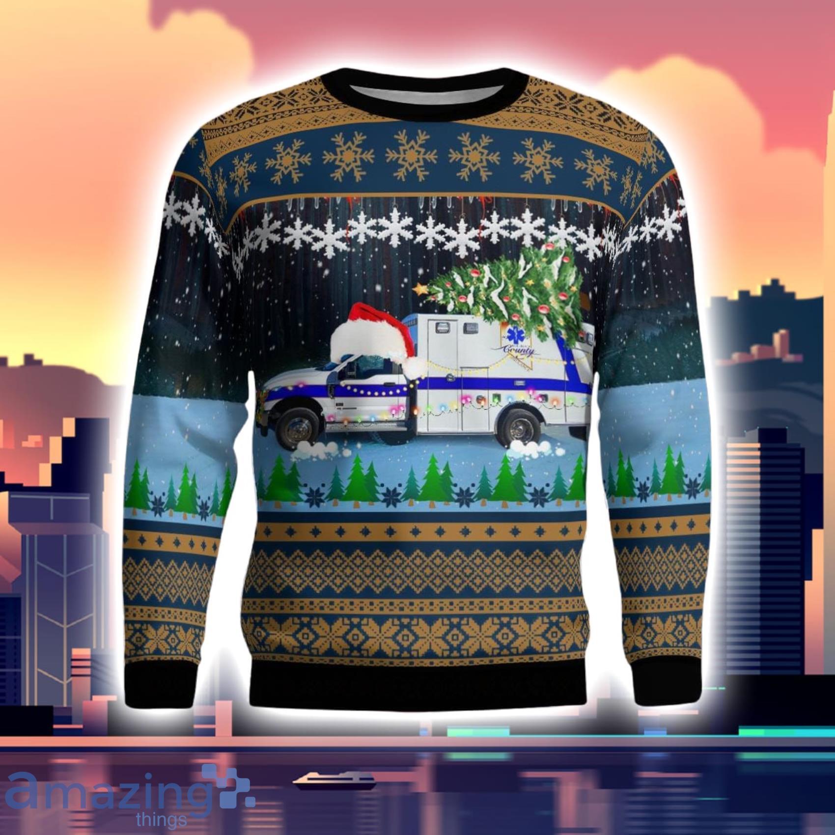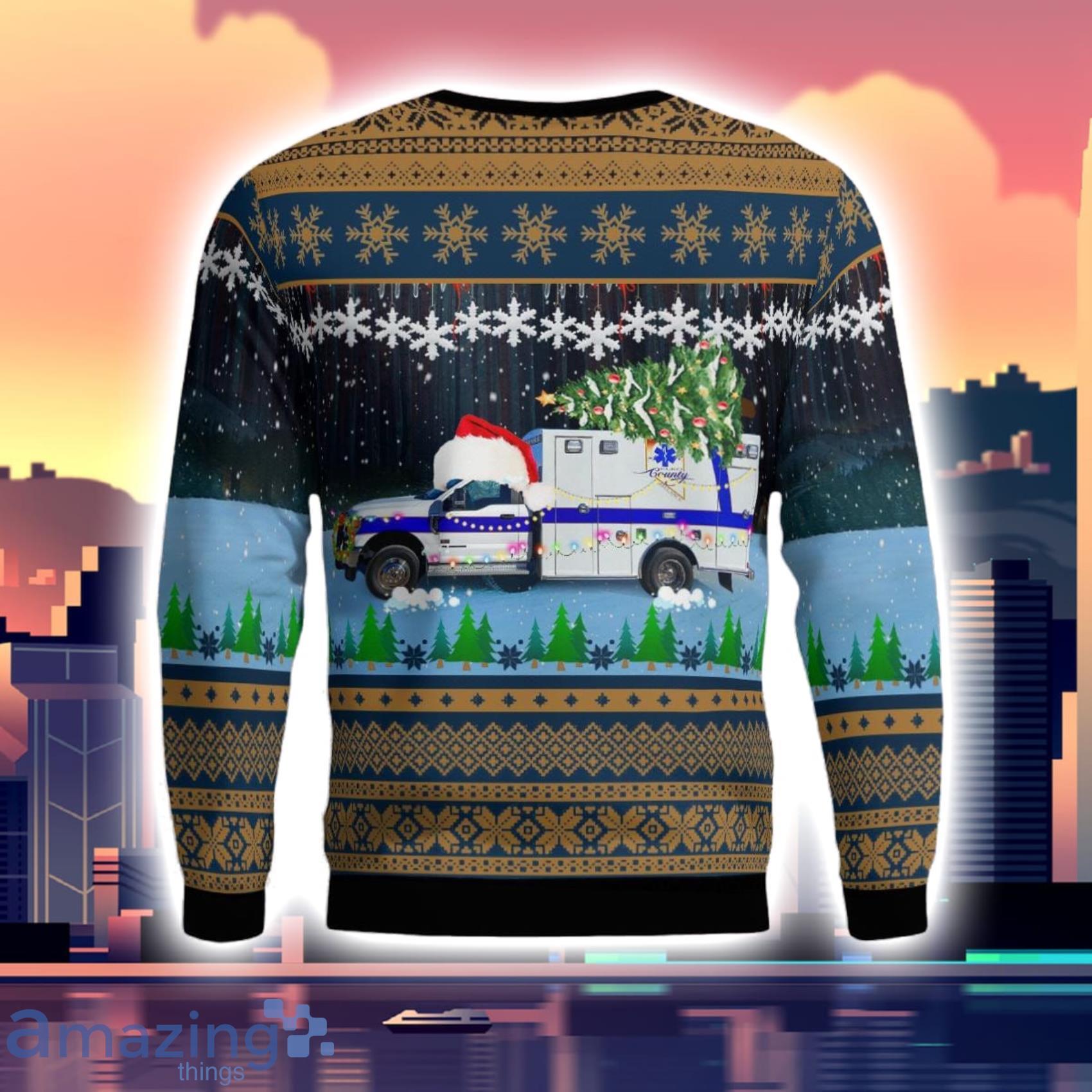 Get in the festive spirit with the Elko County Ambulance Service Elko Nevada Christmas Aop Ugly Sweater! This unique sweater features an all-over print of ambulance vehicles, perfect for showing off your support for the local ambulance service. The sweater is made from high-quality materials, ensuring both comfort and durability. With its bold and eye-catching design, this sweater is sure to be a conversation starter at any holiday gathering. Spread holiday cheer while staying cozy and stylish with the Elko County Ambulance Service Elko Nevada Christmas Aop Ugly Sweater. Order yours today!
