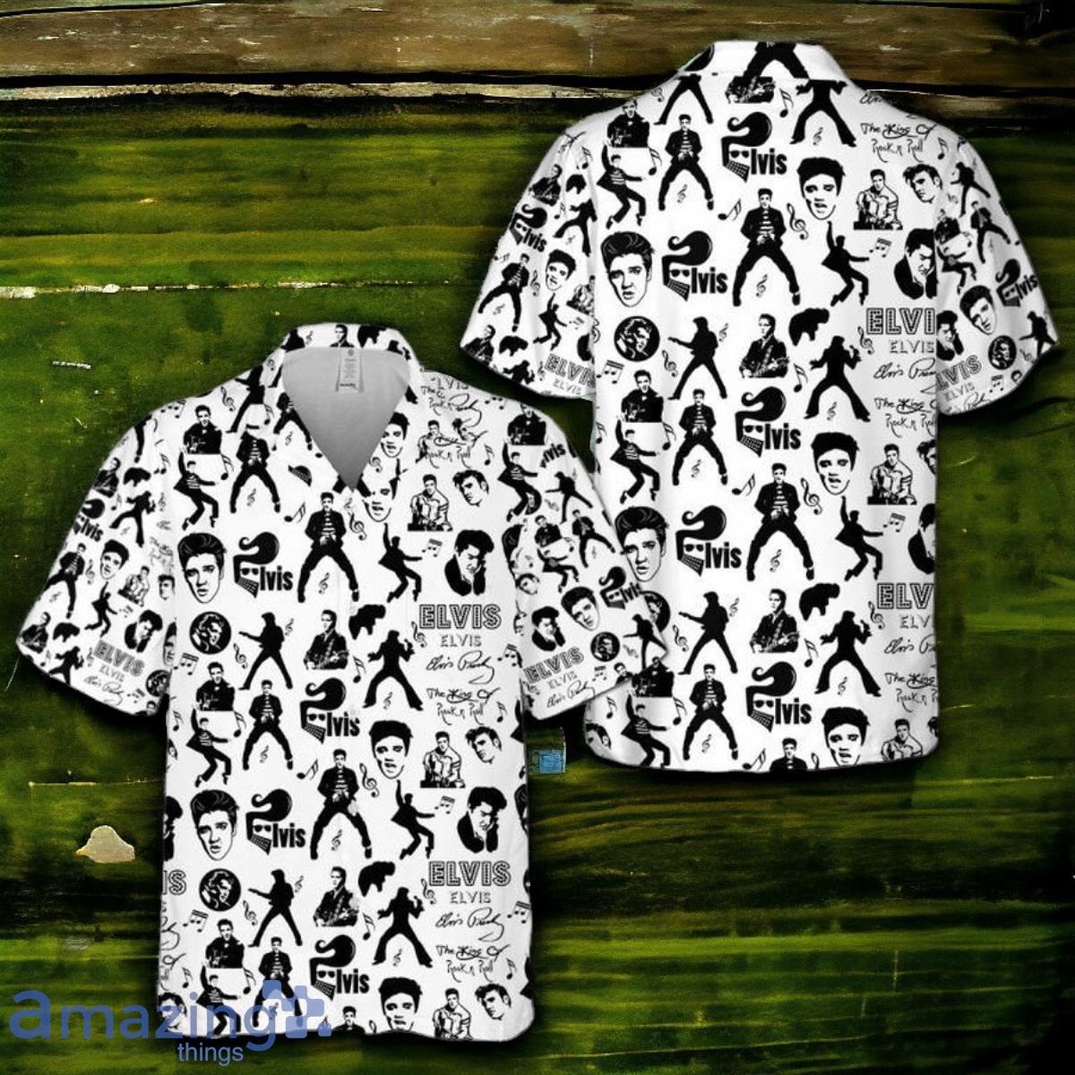 Some of the Elvis Presley Multiple Symbols Black White Hawaiian Shirt Style Gift photos